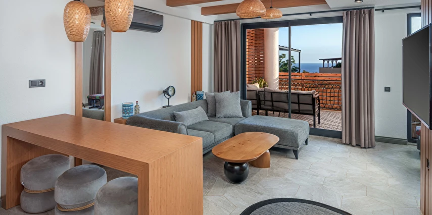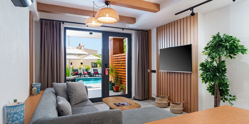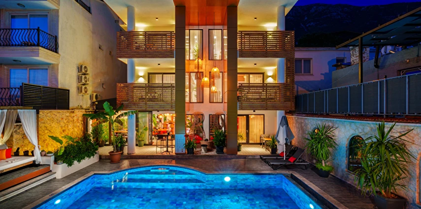 Modern çizgilerle tasarlanmış süitleri; konforlu yaşam alanları, ferah atmosferi ve işlevsel detaylarıyla hem kısa hem de uzun süreli konaklamalar için uygundur. Günün yorgunluğunu atabileceğiniz huzurlu bir ortam sağlarken, Kalkan’ın merkezine ve çevredeki koylara olan yakınlığıyla da avantajlı bir konumda yer alır.