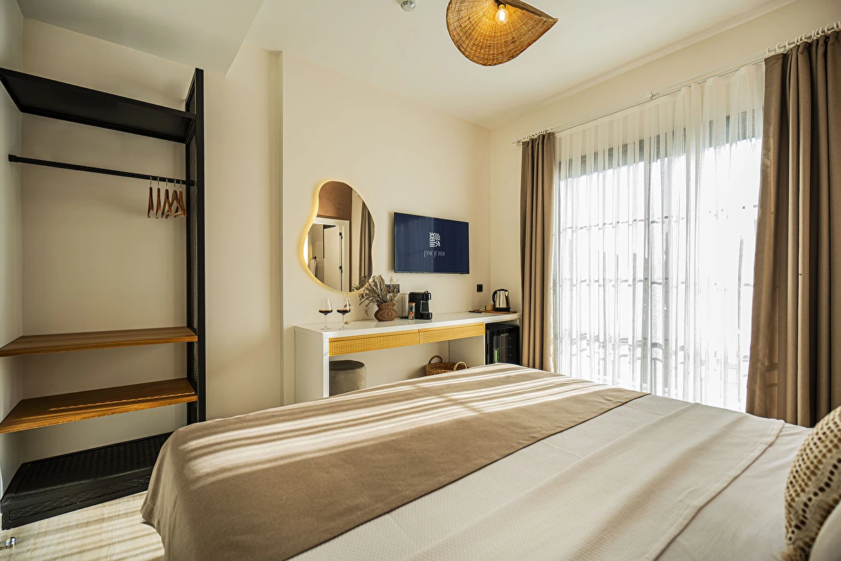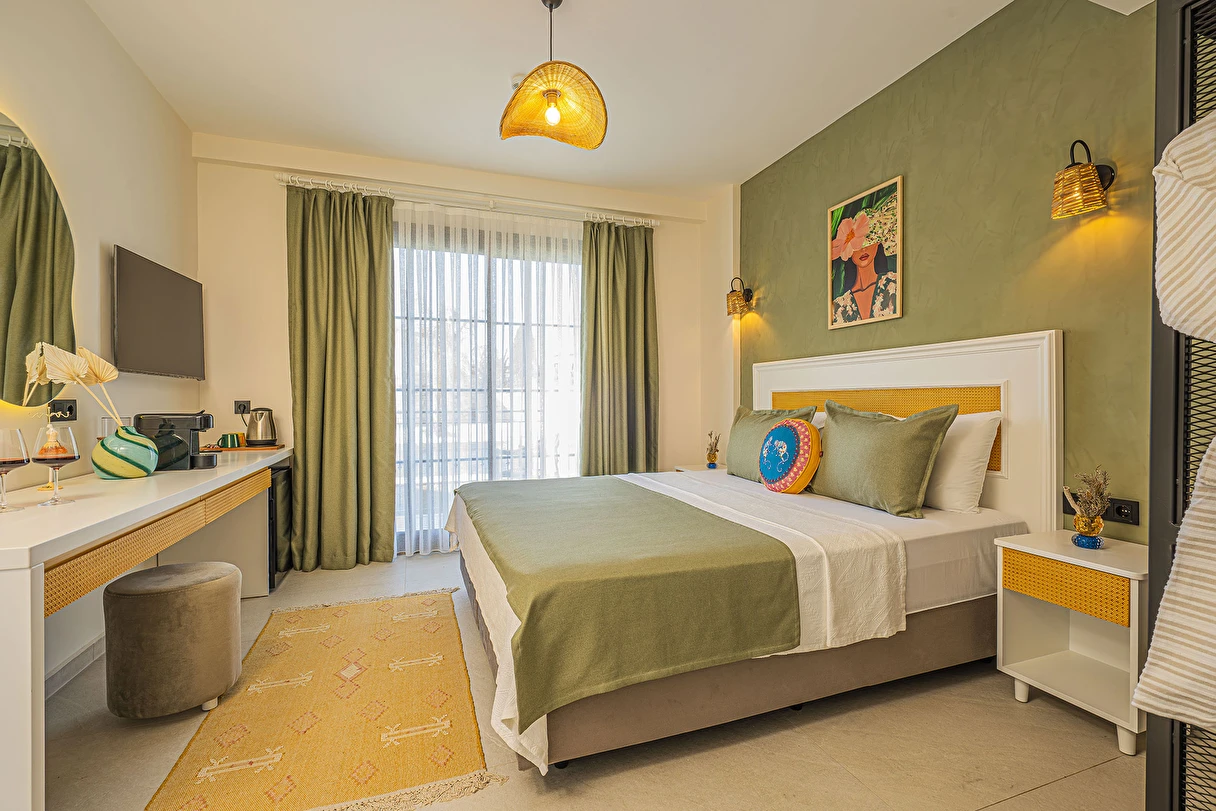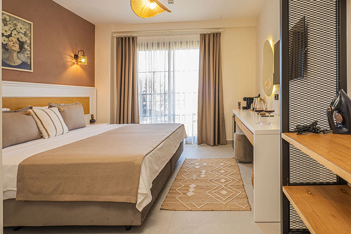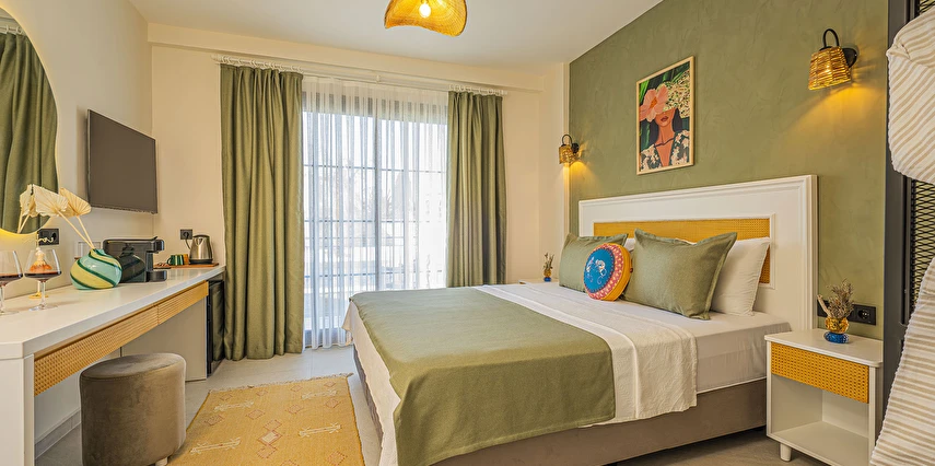 Alaçatı’nın huzurlu atmosferinde konumlanan 11 odalı butik otelimiz, geniş ve keyifli bahçesiyle sakin ve konforlu bir konaklama deneyimi sunar. Şık ve özenle dekore edilmiş odalarımız, serinletici açık havuzumuz ve günün her anına eşlik eden bar alanımız ile misafirlerimize keyif dolu anlar yaşatıyoruz.