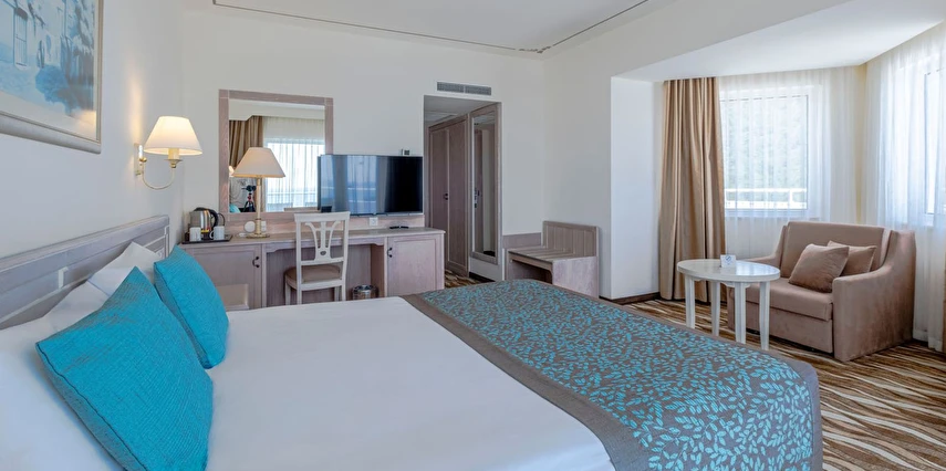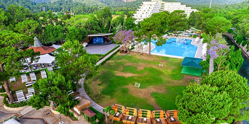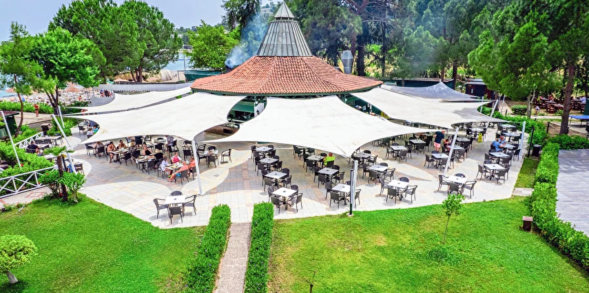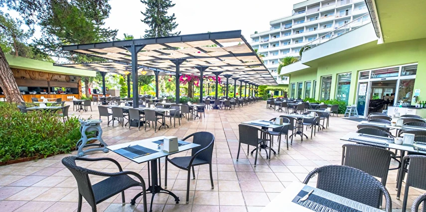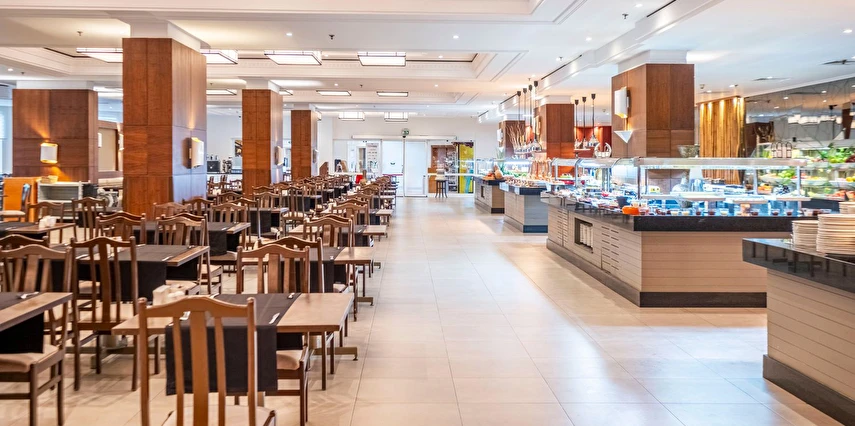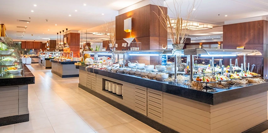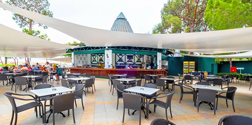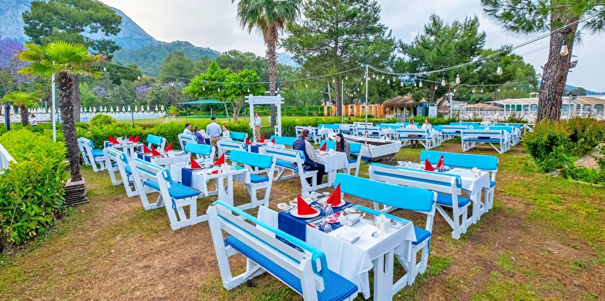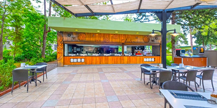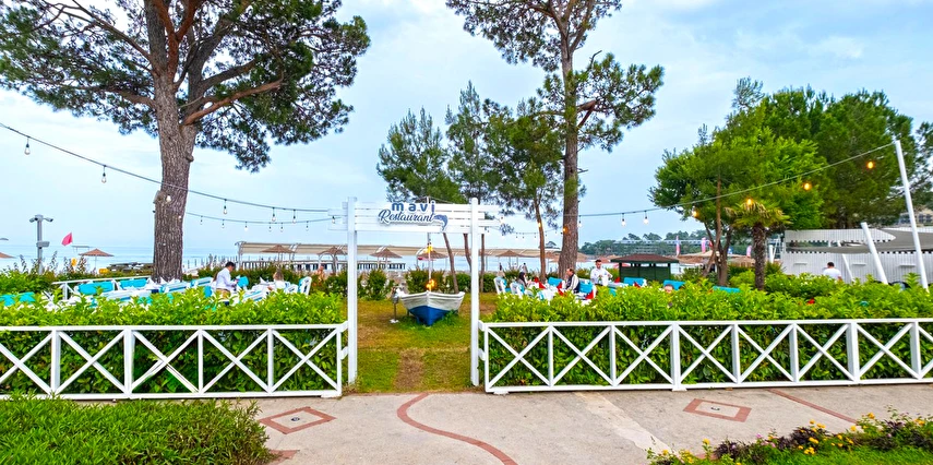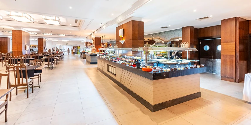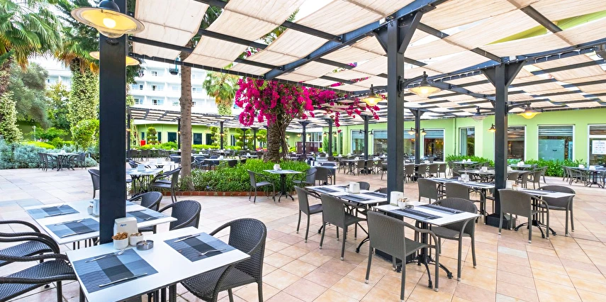 Sabah kahvaltısı, öğle ve akşam yemekleri açık büfe olup tesisin belirlediği markalar dahilinde yerli alkollü-alkolsüz ve bazı ithal içecekler 24 saat ücretsizdir. Ana Restaurantta Türk, İtalyan, Deniz Ürünleri, Meksika, Fransız, Uzakdoğu tema geceleri düzenlenir. A'la Carte restoranlar hava şartlarına bağlı olarak haftanın 3 günü hizmet vermektedir. İnternasyonel ürünler içermektedir tek bir lokasyonda hizmet verir, ücretli ve rezervasyon gerektirir.