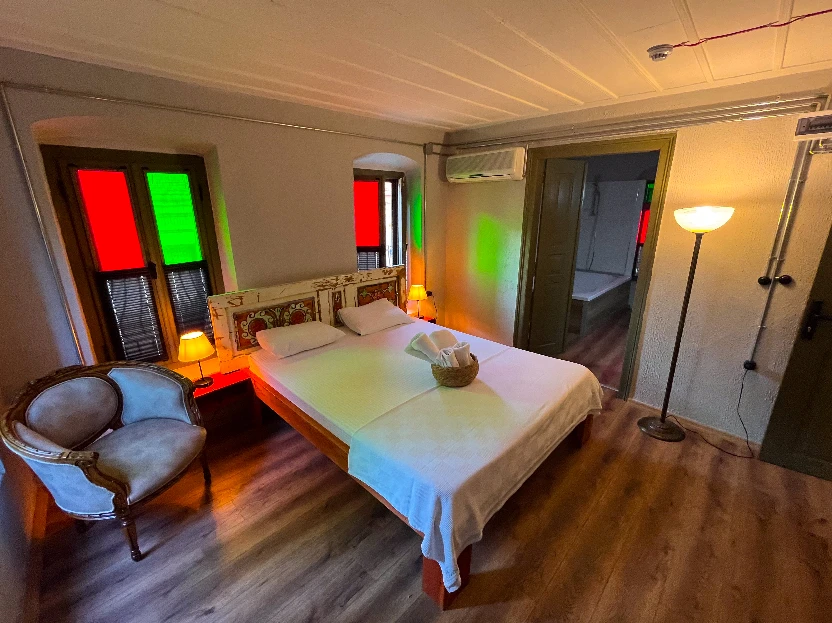 MacaronLatibule, Ayvalık’ın tarihi dokusunu modern konforla buluşturan, her odasında özel jakuzi bulunan butik bir konukevidir. Taş mimarisi, özgün dekorasyonu ve sakin atmosferiyle misafirlerine ayrıcalıklı bir konaklama deneyimi sunar. Ayvalık’ın kalbinde, huzur dolu bir kaçamak arayanlar için özenle tasarlandı. Samimi hizmet anlayışımız ve detaylara verdiğimiz önemle, kendinizi evinizde hissedeceğiniz bir atmosfer yaratıyoruz. Macaron Latibule’de zaman yavaş akar, her an size özel olur.