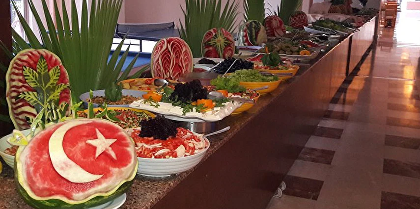 Her şey Dahil Konseptinde; Sabah kahvaltısı, öğle ve akşam yemekleri açık büfe olup, tesisin belirlemiş olduğu markalar dahilinde 10:00 ile 22:00 saatleri arasında tüm yerli içecekler ücretsizdir. Şişe olarak servis edilen içecekler, yabancı içecekler taze sıkılmış meyve suları ve Türk Kahvesi ücretlidir.