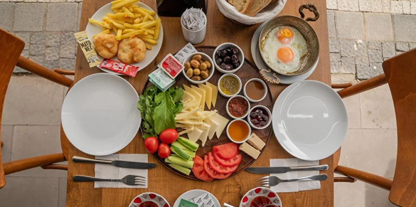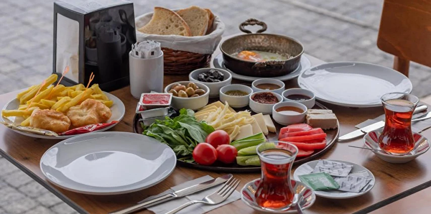 Sadece oda konaklamalarda, tesis genelinde alınan tüm yiyecek ve içecekler ücretli. Oda Kahvaltı konaklamalarda, sabah kahvaltısı dışında alınan tüm yiyecekler ücretli. Tesis genelinde alınan tüm içecekler ücretli. Kahvaltı 09.00 - 11.00 saatleri arasında veriliyor. Kahvaltı hizmeti tesisin anlaşmalı olduğu bir restoranda verilmektedir.