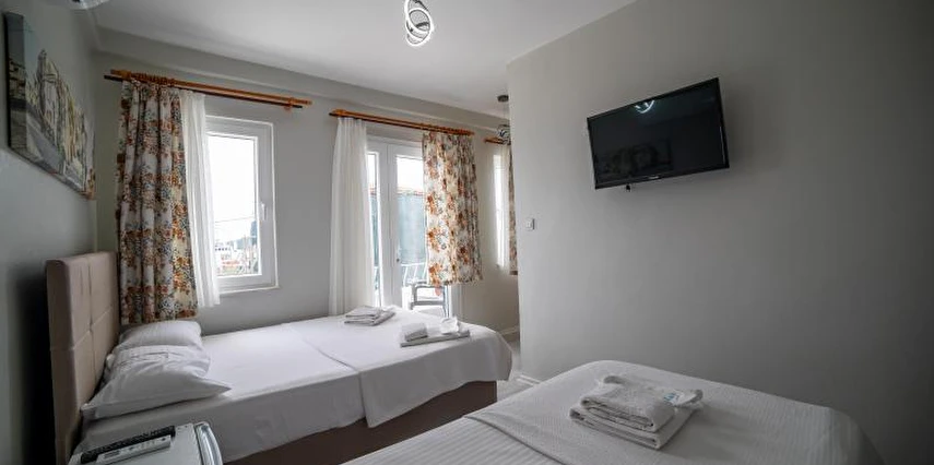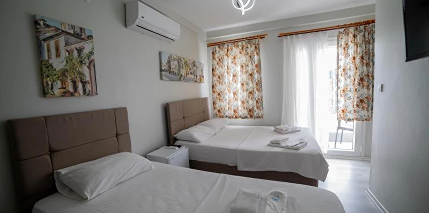 Ayvalık’ın en sevilen turistik noktalarından Cunda’da hizmet veren Mai Pansiyon, güler yüzlü hizmeti ve ev sıcaklığındaki odalarıyla misafirlerine keyifli bir konaklama alternatifi sunuyor. Bazıları deniz manzaralı olan odaların tümünde; LCD televizyon, uydu yayını, saç kurutma makinesi, klima ve kablosuz internet sistemi bulunuyor. Otopark, kablosuz internet ve resepsiyon hizmeti bulunan tesisin minik bir mola verebileceğin kafe de mevcut. Mai Pansiyon, Ayvalık Otogarı’na 6 km mesafede konumlanıyor. Güler yüzlü hizmeti ile evinizin konforunu tatile taşıyan Mai Pansiyon, Cunda'nın benzersiz atmosferi ve muhteşem manzaralarıyla unutulmaz bir tatil için misafirlerini bekliyor.