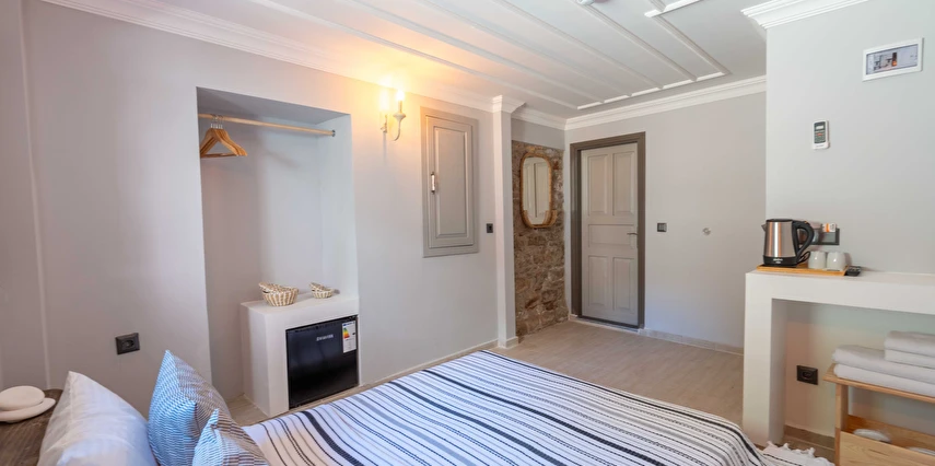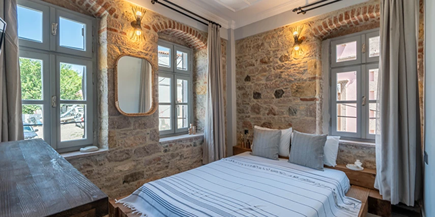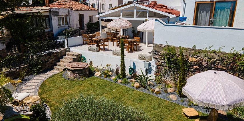 Konforlu odaları, özenle hazırlanmış detayları ve güler yüzlü hizmet anlayışıyla öne çıkan tesis; Cunda merkezine, restoranlara ve gezilecek noktalara yürüme mesafesinde bulunur. Sabahları sunulan kahvaltı, adanın taze ve yerel lezzetleriyle güne keyifli bir başlangıç yapmanızı sağlar.