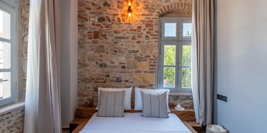 Cunda Adası’nın huzurlu atmosferinde konumlanan Maja Cunda Otel, taş mimarisi ve sıcak dekorasyonuyla misafirlerine samimi ve keyifli bir konaklama sunar. Adanın karakteristik dokusunu yansıtan otel, sakin bir ortamda dinlenmek isteyen misafirler için ideal bir seçenektir.
