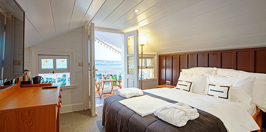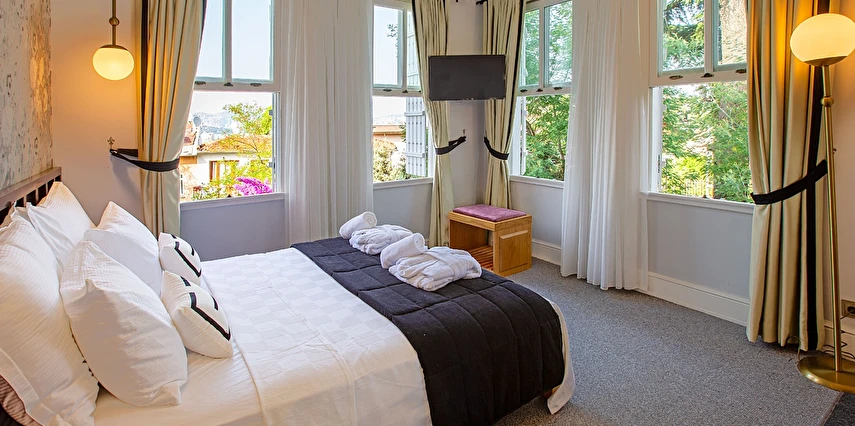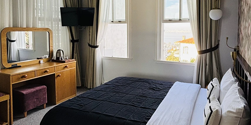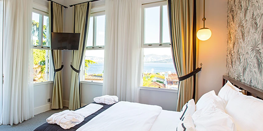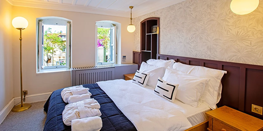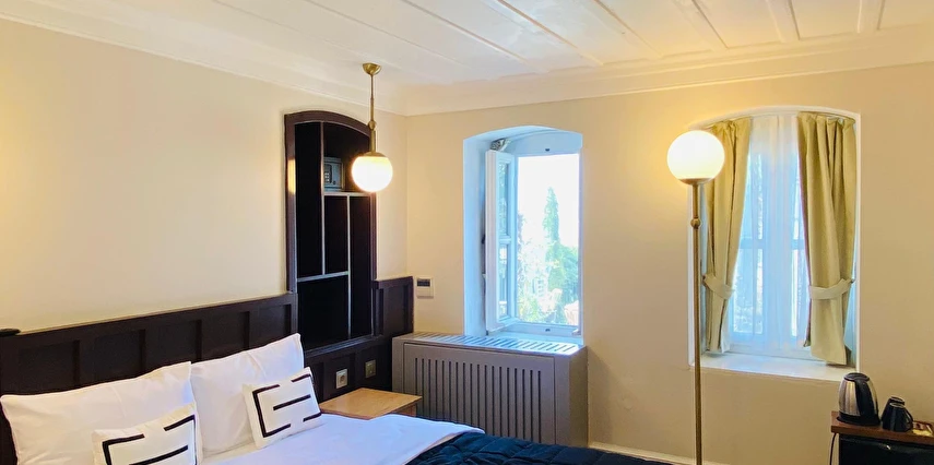 Daha Fazla Gösterİstanbul'un incisi Prens Adaları'nın kalbi Büyükada'nın geçmişini günümüzde yaşatan, özenle restore edilerek tarihi dokusunu koruyan bu büyüleyici konak; konforlu odaları, eşsiz deniz, ada ve şehir manzarası eşliğinde, kaliteli hizmetiyle misafirlerine şehrin gürültüsünden uzak, keyifli ve huzur dolu anlar sunmaktadır.