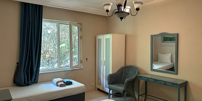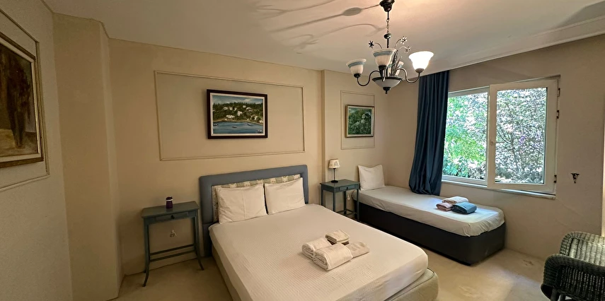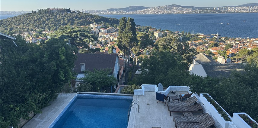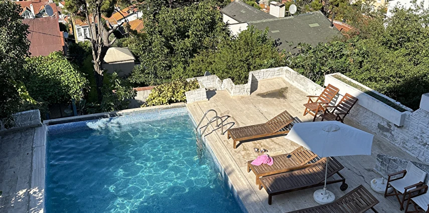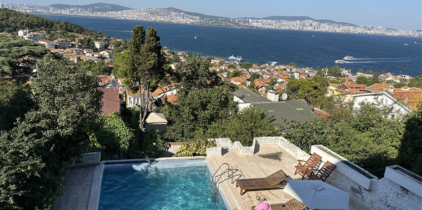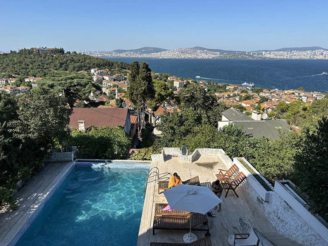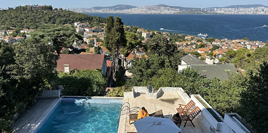 Heybeliadanın İstanbula ve Ruhban Okulu'na bakan Bayrak Tepesine yakın Havuzlu Büyükçe bir bahçerisinde yer alan konak.