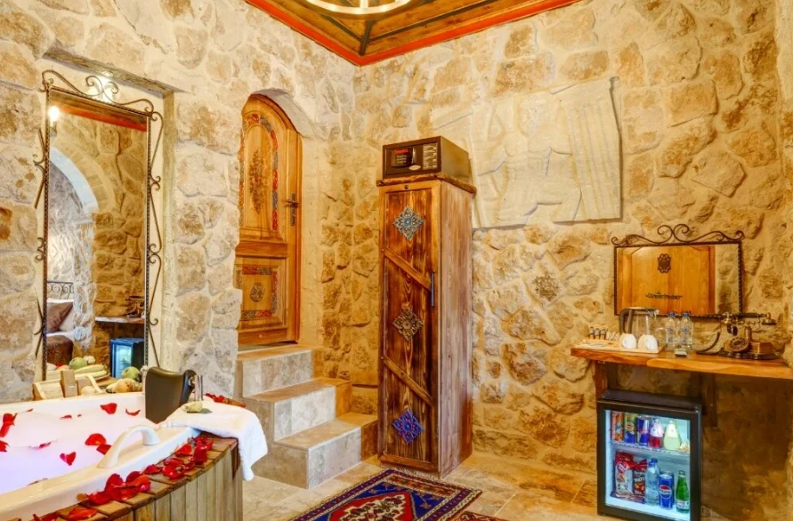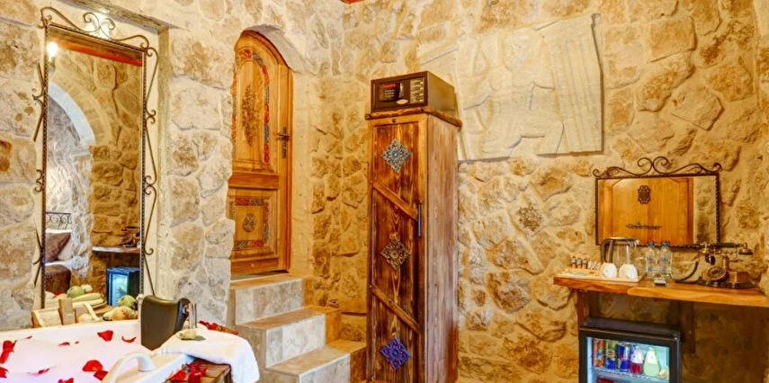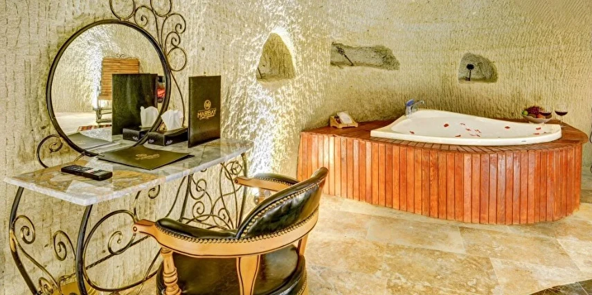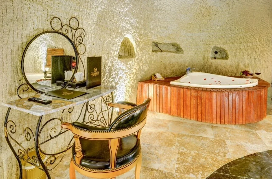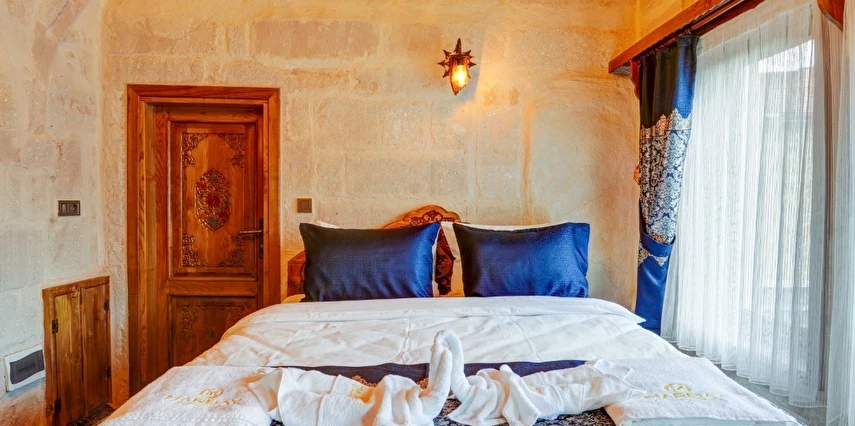 Kapadokya'nın otantik taş ve mağara evlerinden esinlenilerek tasarlanan MARBAY Cave Hotel, kapılarını sonuna kadar açarak sizlere huzurlu bir tatil vadediyor, bir adım ötede geniş bir "butik otel" yelpazesi sunuyor. Binlerce yıllık özgün mimari tasarımıyla KAPADOKYA'nin kalbinde çok farklı medeniyetleri kucaklayan çok sıra dışı bir tatil deneyimi. MARBAY Cave, doğa ve tarihin kesişme noktasında asla unutamayacağınız bir deneyim sunuyor, konforunuzu yepyeni, etkileyici deneyimlerle taçlandırıyor. NAR'in merkezinde bulunan MARBAY Cave, NEVŞEHİR MERKEZİNE sadece 15 dakikalık yürüme mesafesindedir. MÜZE VE ÖREN YERLERİNE SADECE 15 DAKİKALIK ARAÇ MESAFESİNDE Ayrıca NAR VADİ'Sİnİn tüm güzelliklerine çarpıcı bir mesafede bulunan sessiz ve sakin bir konumda ŞEHİRİN BÜTÜN YORGUNLUĞUNU ATACAĞINIZI VADEDİYORUZ. 13 STANDART VE SUİT ODALARIMIZ ile tüm yıl boyunca misafirlerimize hizmet vermekteyiz. Güler yüzlü ve tecrübeli kadromuz ile sizleri tüm yıl ağırlamaktan mutluluk duyarız.