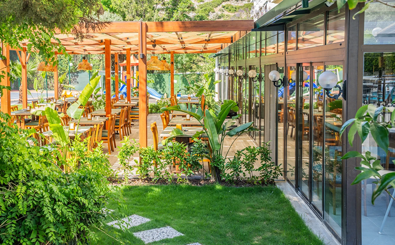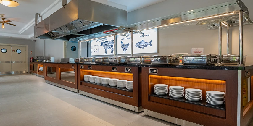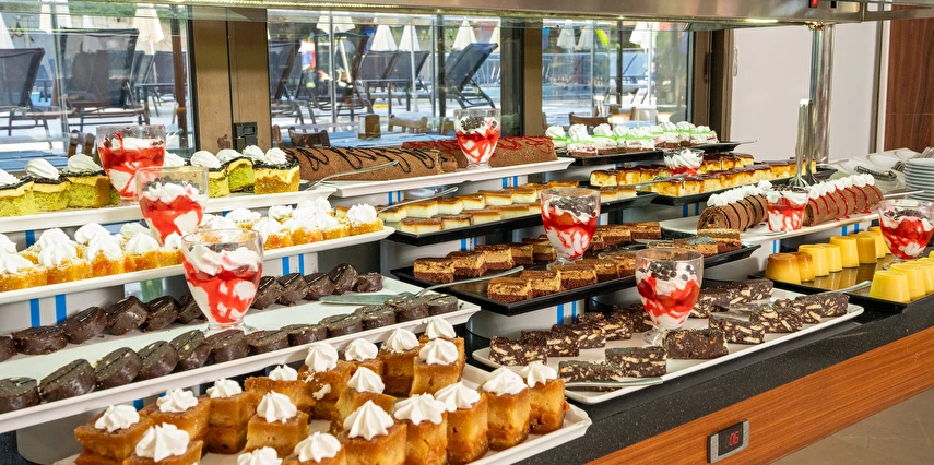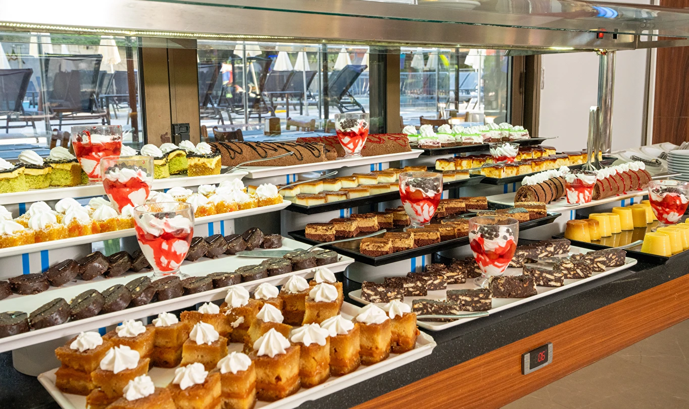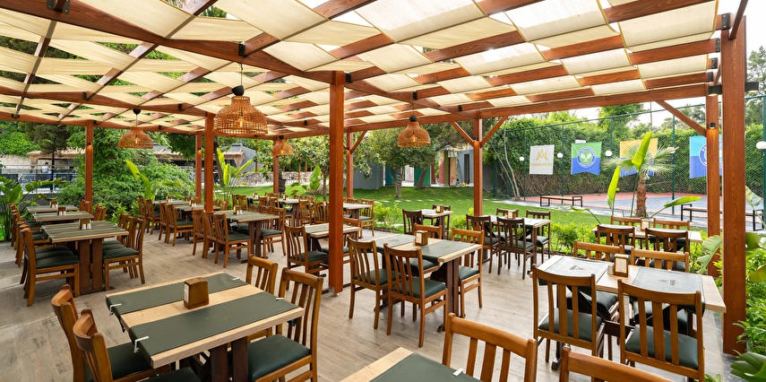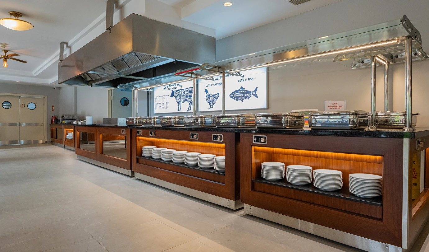 Sabah kahvaltısı, öğle ve akşam yemekleri açık büfe olup, tesisin belirlemiş olduğu markalar dahilinde 10:00 ile 23:00 saatleri arasında tüm yerli alkollü (Rakı, cin, votka, bira, likör, açık şarap) ve alkolsüz içecekler ücretsizdir. Tüm import içecekler, Türk Kahvesi, Taze sıkılmış portakal suyu, A'La Carte Servisleri, Tüm şişe İçecekler extra ücretlidir.