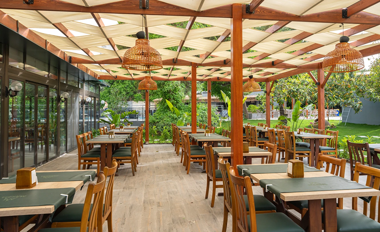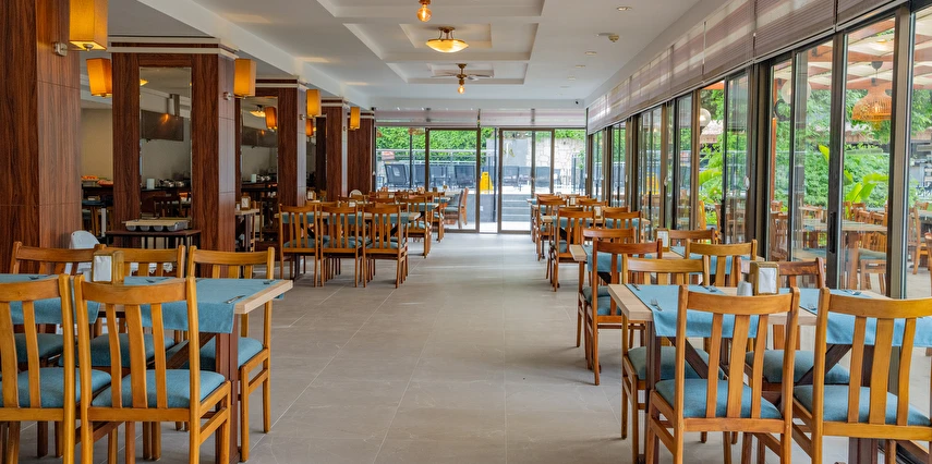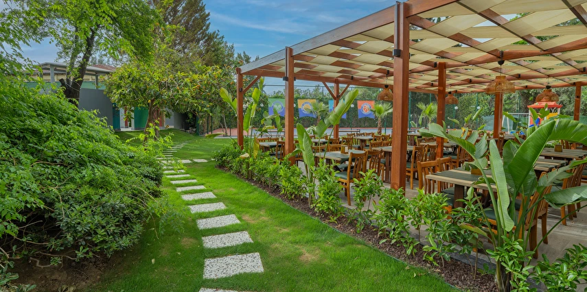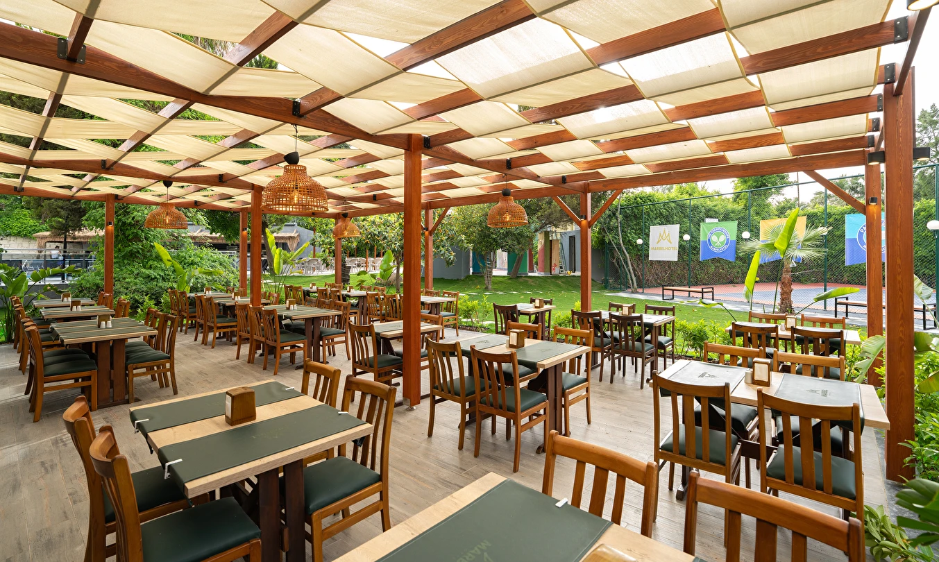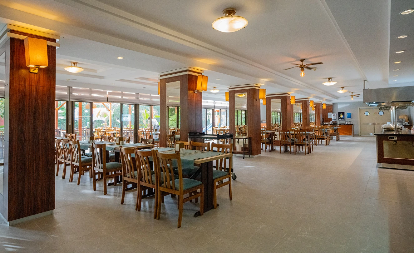 Sabah kahvaltısı, öğle ve akşam yemekleri açık büfe olup, tesisin belirlemiş olduğu markalar dahilinde 10:00 ile 23:00 saatleri arasında tüm yerli alkollü (Rakı, cin, votka, bira, likör, açık şarap) ve alkolsüz içecekler ücretsizdir. Tüm import içecekler, Türk Kahvesi, Taze sıkılmış portakal suyu, A'La Carte Servisleri, Tüm şişe İçecekler extra ücretlidir.