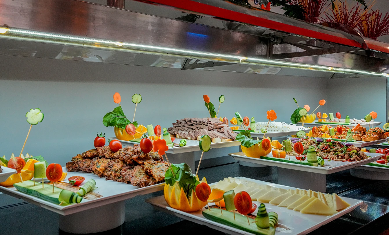Misafir Sayısının sınırına bağlı olarak öğünler Set Menü veya Açık Büfe olarak servis edilebilir.