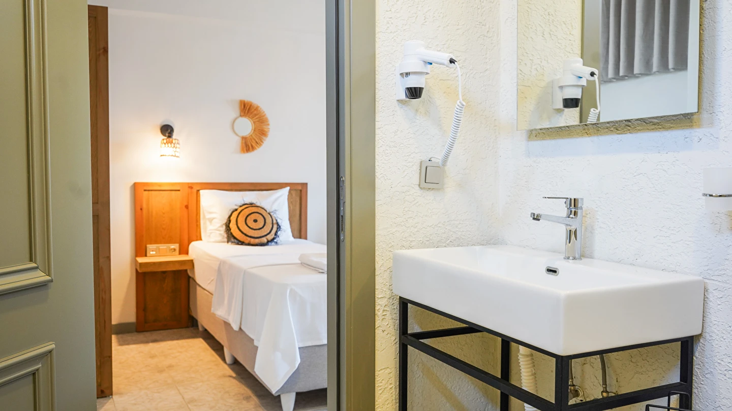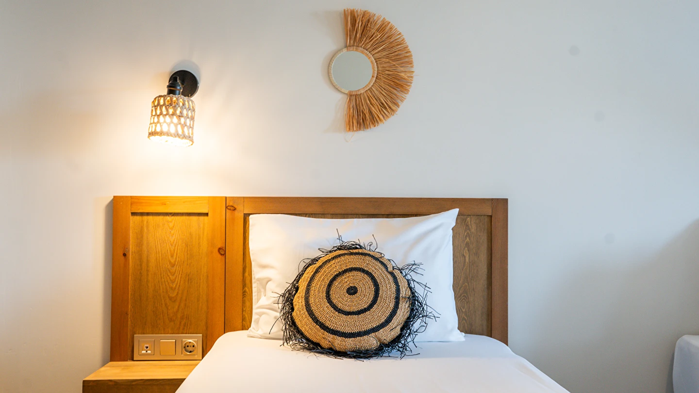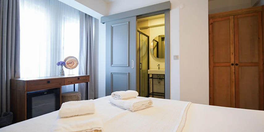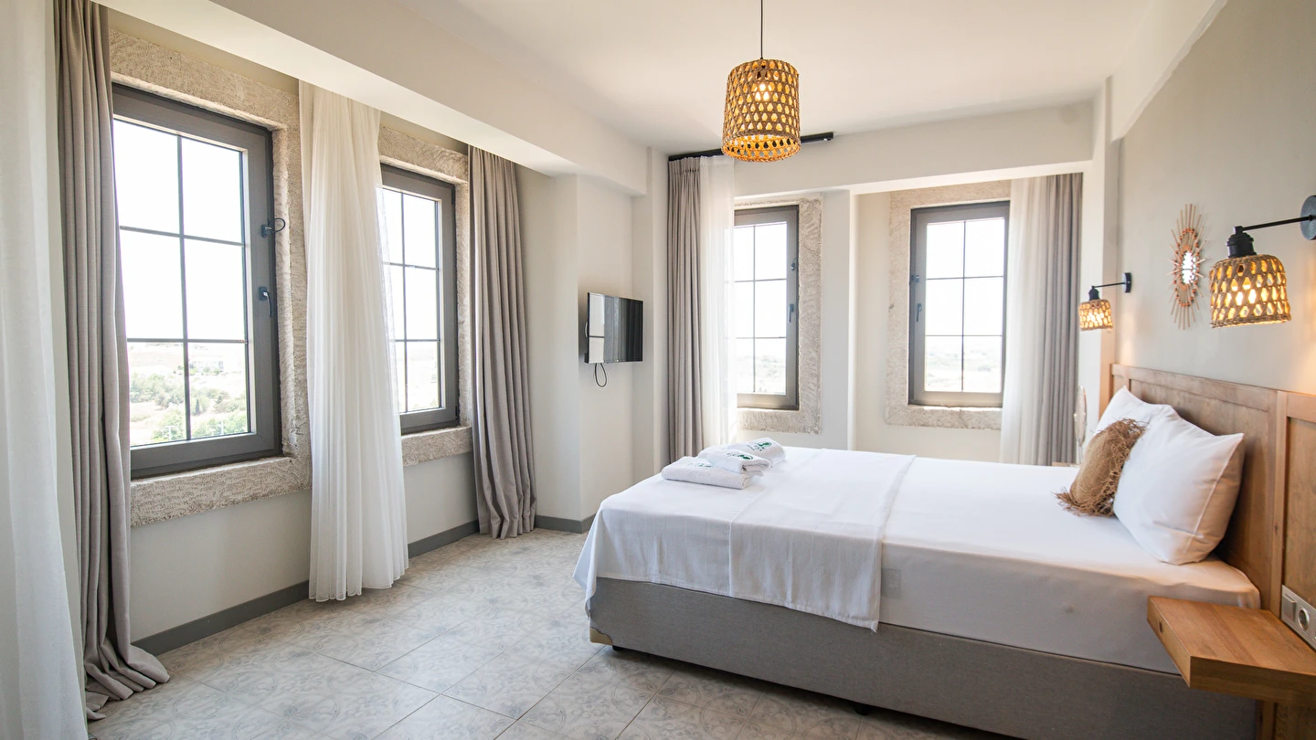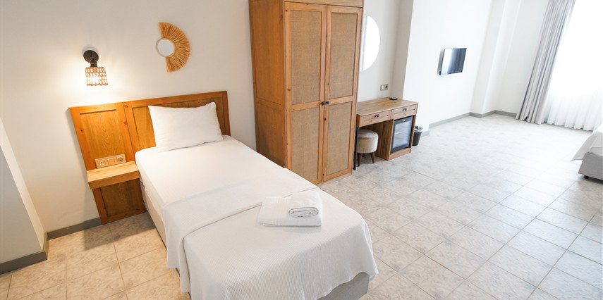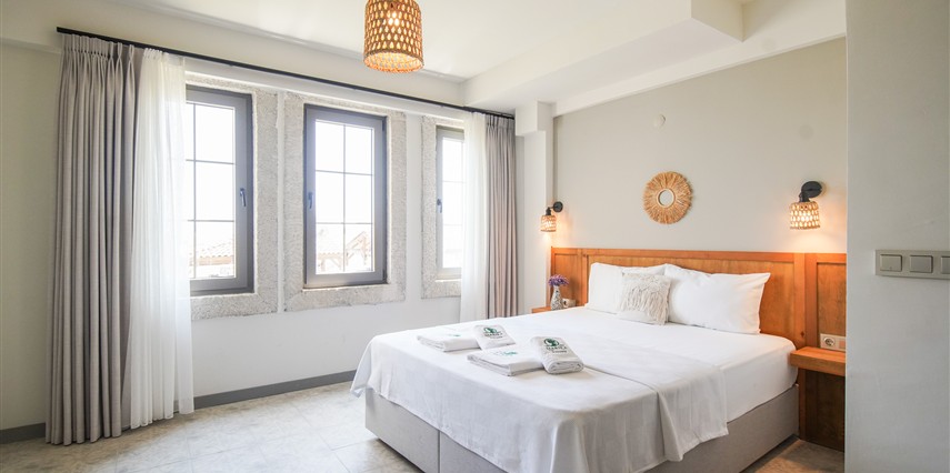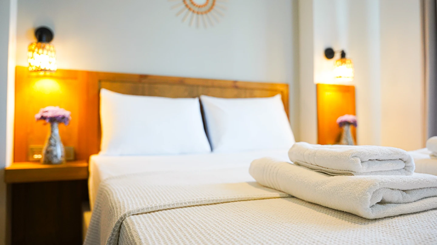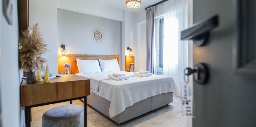 Marika Otel’in odaları aydınlık, ferah ve temiz tasarımlı olup, farklı oda tipleriyle çiftlerden ailelere kadar çeşitli konaklama ihtiyaçlarına uygundur. Birçok odadan bahçe ve deniz manzarası sunulur, böylece sabahları doğa ve denizle güne başlamak mümkündür.