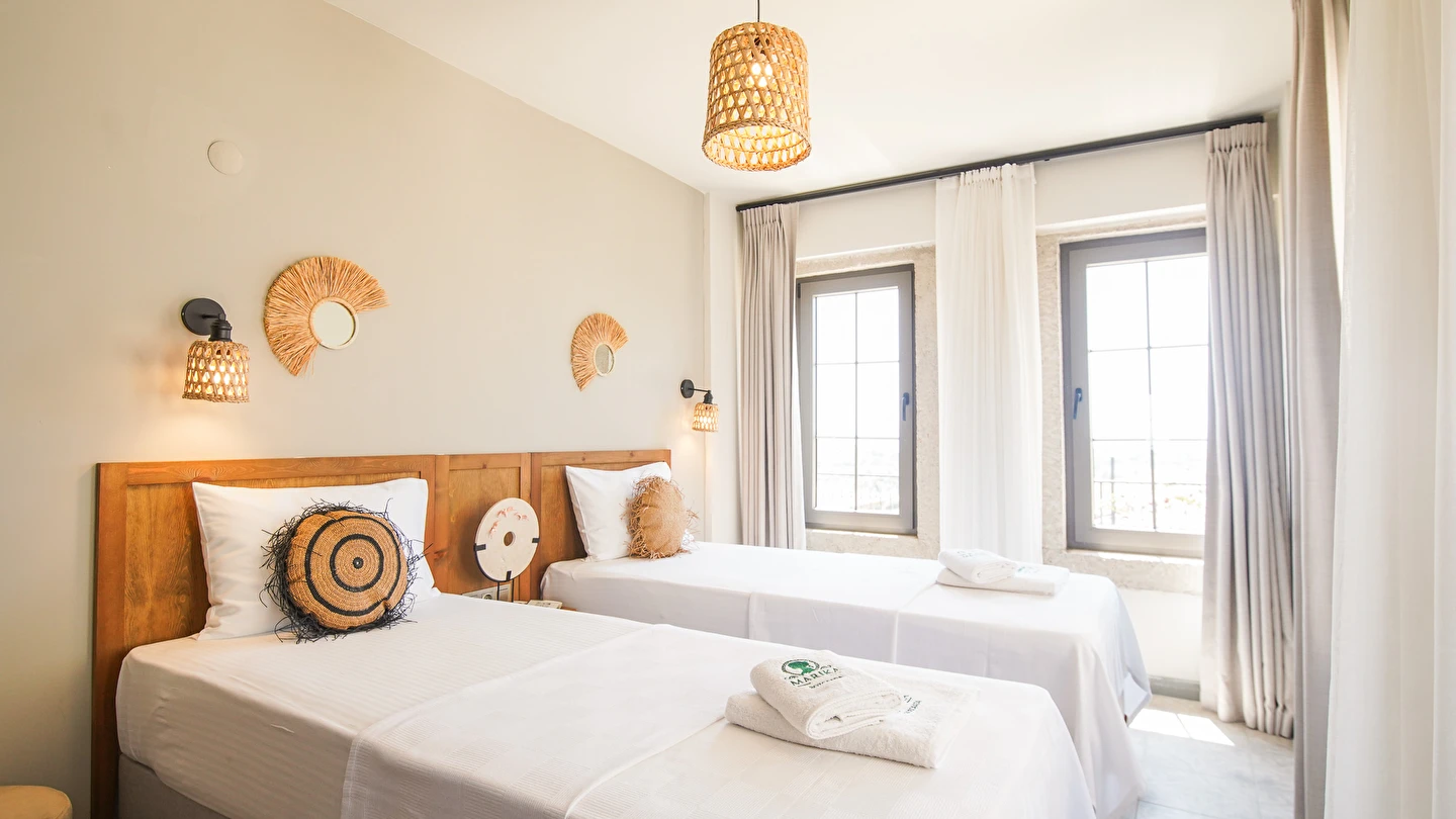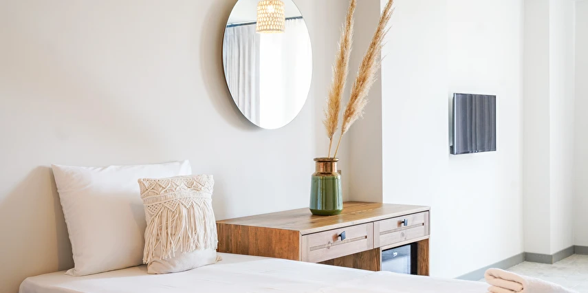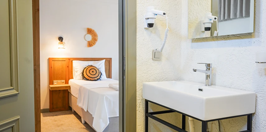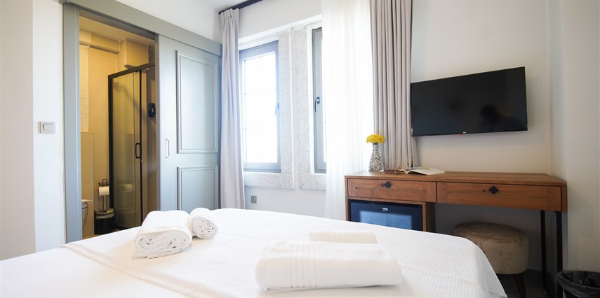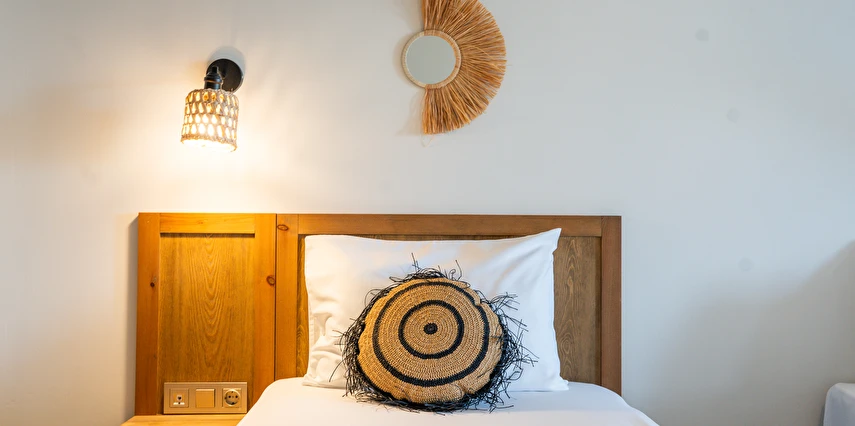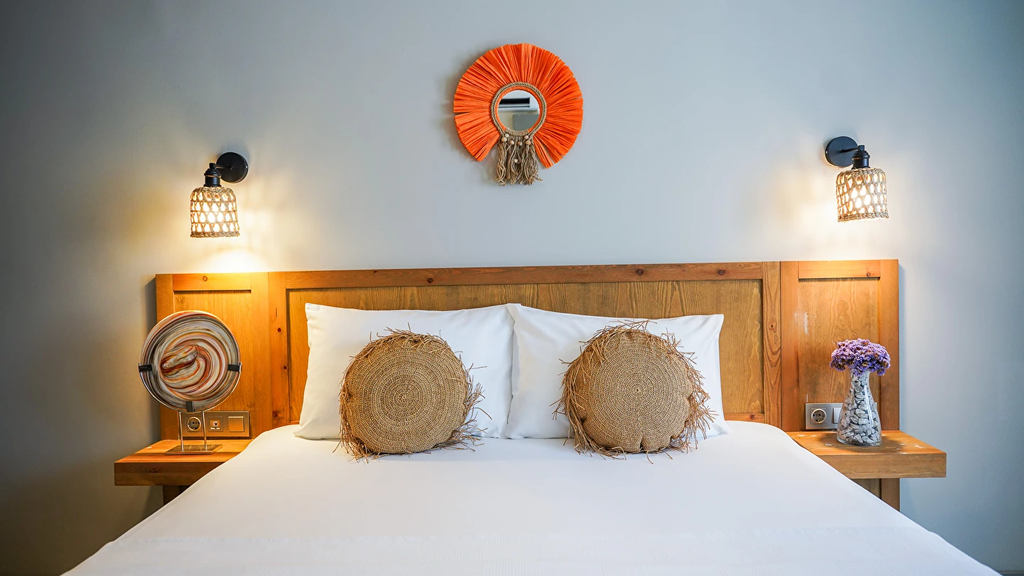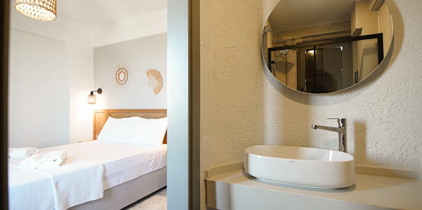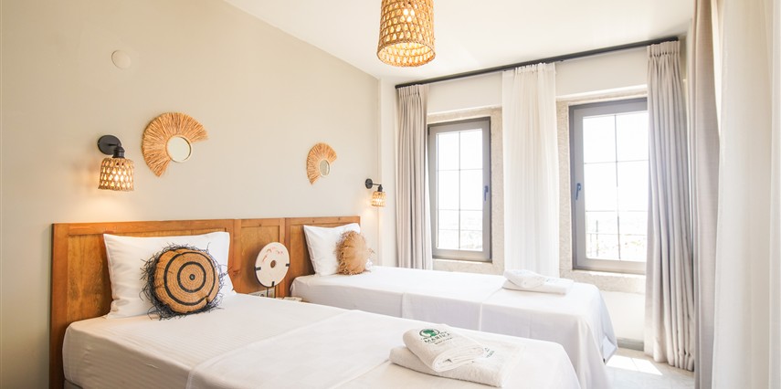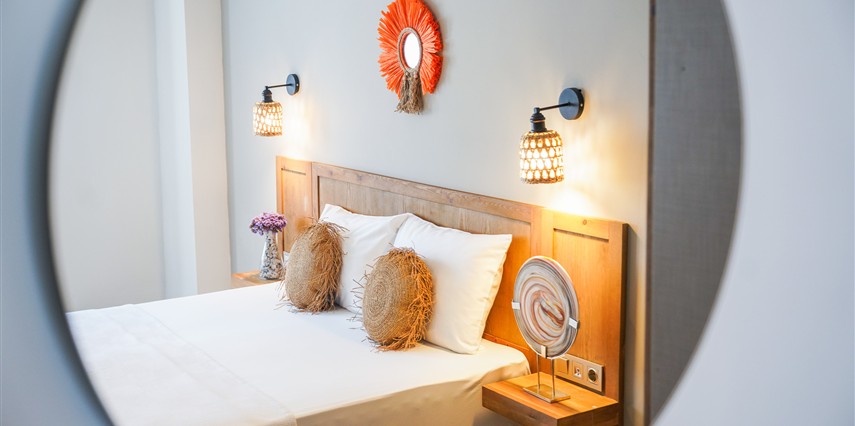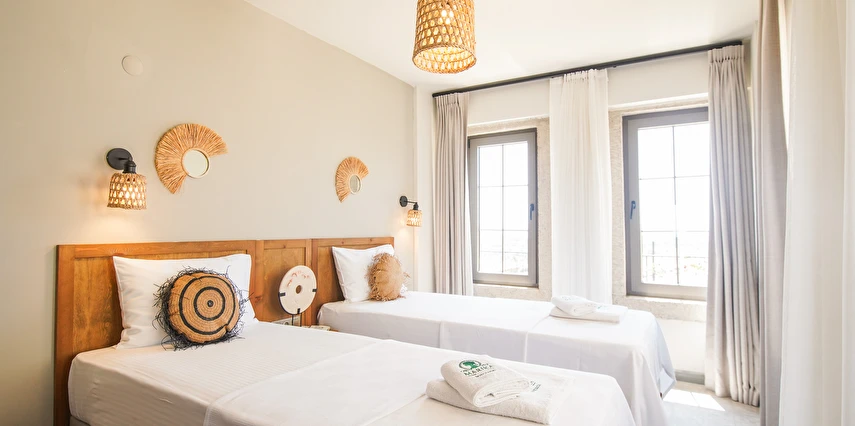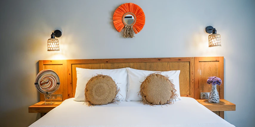 Marika Otel’in odaları aydınlık, ferah ve temiz tasarımlı olup, farklı oda tipleriyle çiftlerden ailelere kadar çeşitli konaklama ihtiyaçlarına uygundur. Birçok odadan bahçe ve deniz manzarası sunulur, böylece sabahları doğa ve denizle güne başlamak mümkündür.
