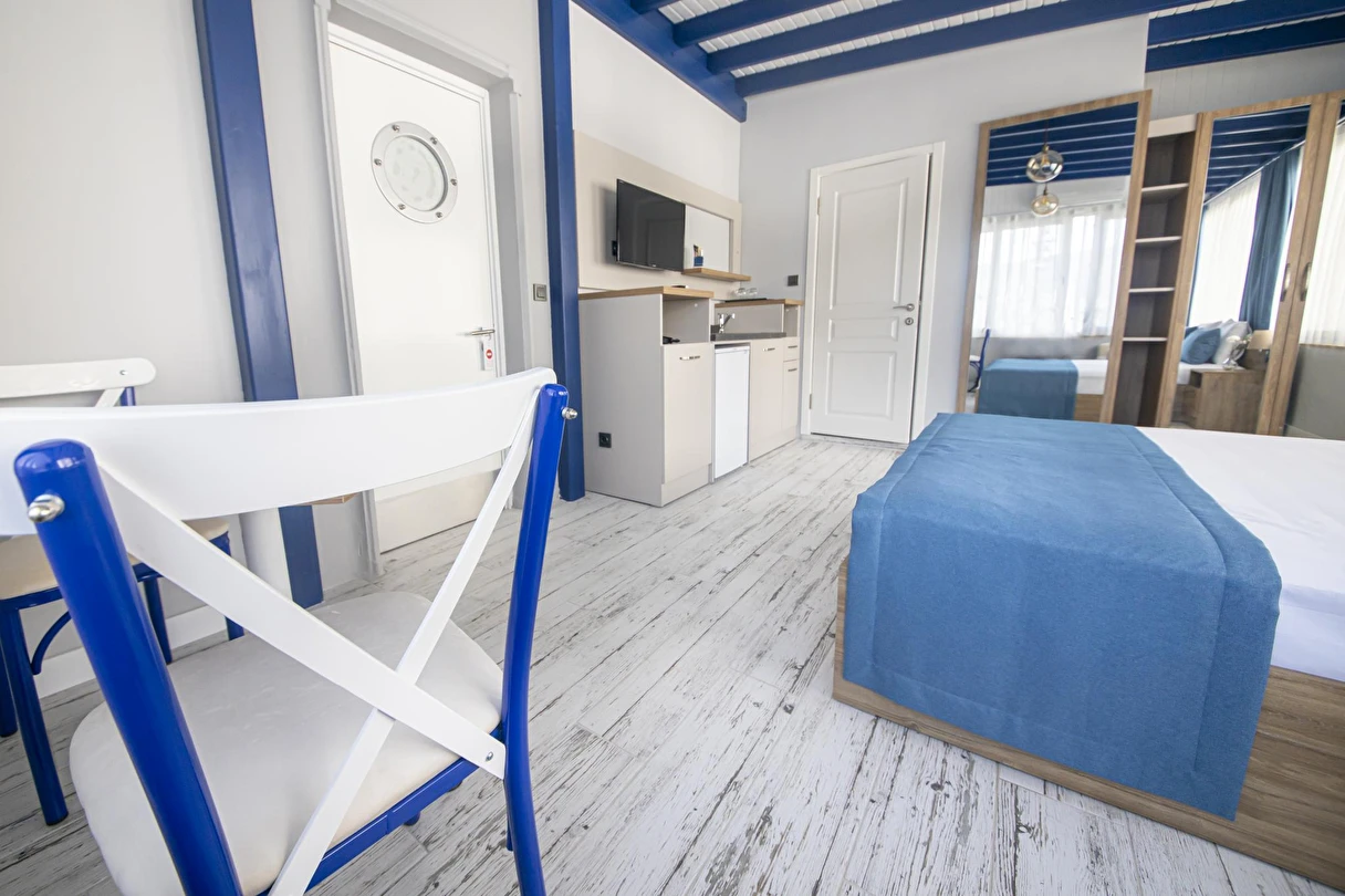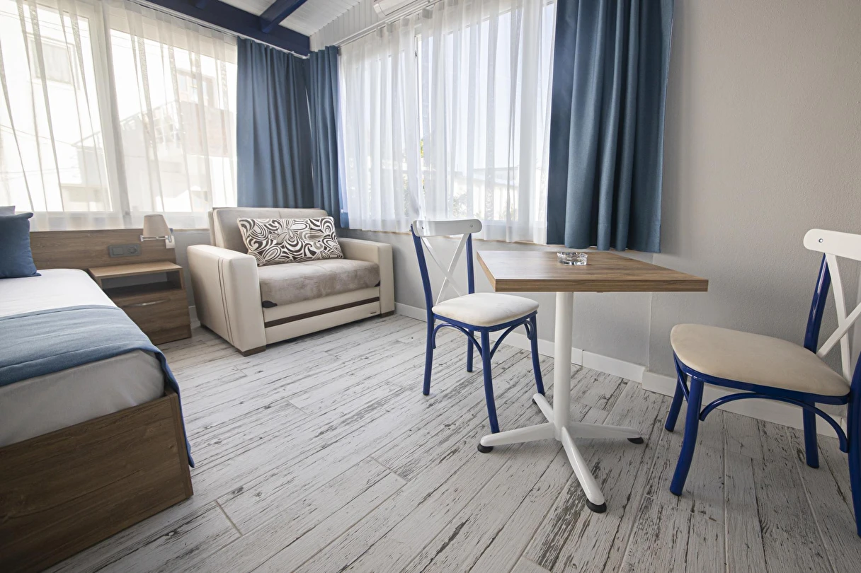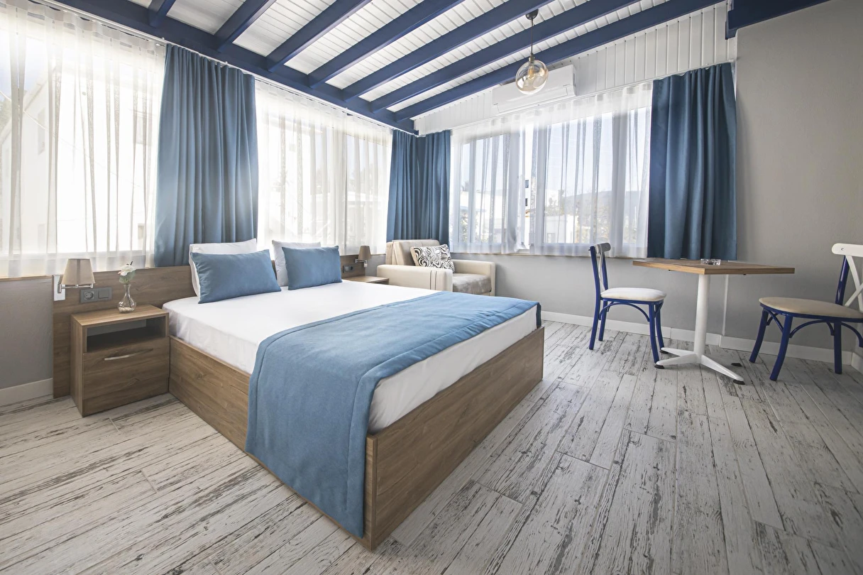Ege’nin en güzel tatil beldelerinden Bodrum’da misafirlerimizi ağırlıyoruz, sahile yakın konumda yer alıyoruz. Tesisimiz, birçok kafe, restoran, alışveriş merkezine kolayca erişilen konumuyla öne çıkıyor. Tesis; modern dekore edilmiş sade ve konforlu odaları, ulaşıma elverişli konumu ve kaliteli hizmeti ile rahat bir Bodrum konaklaması için ideal bir adres sunuyor. Kahvaltımızı otelimize 50 metre mesafedeki anlaşmalı bir restoranda kahvaltı tabağı ve sınırsız Türk çayı eşliğinde servis ediyoruz. Her gün kahvaltıya gitmeden önce resepsiyonumuzdan "Kahvaltı Fişi" talep etmeniz gerekmektedir. 12 yaş altı çocuklar ücretsiz olup, 12 yaş üstü çocuklara kahvaltı kuponu verilmemektedir. Talep etmeniz durumunda EKSTRA olarak ücretlendirilecektir.