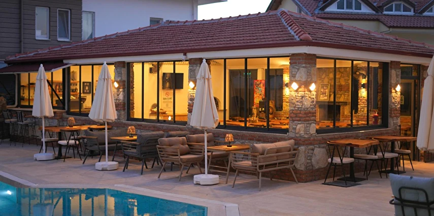 Otelimizde peyzajına önem verilmiş bir havuz alanı bulunmaktadır. Burada, sıcak yaz günlerinde serinleyebilir, güneşin tadını çıkarabilirsiniz. Ayrıca, alakart servisimizle, damak zevkinize hitap eden lezzetlerle tanışabilirsiniz. Şeflerimizin özenle hazırladığı yemekler, konaklamanızı unutulmaz kılacak.