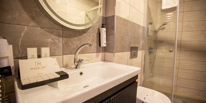 Daha Fazla GösterMarlen Hotel Mavişehir – Konforun Sahil Zarafetiyle Buluştuğu Yer İzmir’in şık ve huzurlu Mavişehir semtinde yer alan Marlen Hotel, denize sadece birkaç adım uzaklıkta zarif bir butik otel deneyimi sunuyor. Modern tasarımı, sıcak atmosferi ve kişiye özel hizmet anlayışıyla hem iş seyahati yapanlar hem de tatil amaçlı gelen misafirler için konfor, stil ve huzuru bir arada sunuyor. Otelin şık bir şekilde dekore edilmiş odaları; Standart Çift Kişilik, İki Yataklı ve akıllı iklim kontrol sistemli, yüksek hızlı Wi-Fi’li geniş Süitler gibi seçenekler içeriyor. Her detay, sakin ve dinlendirici bir ortam yaratmak amacıyla özenle düşünülmüş. Misafirler güne zengin açık büfe kahvaltıyla başlayabilir, otel restoranında özenle hazırlanmış yemeklerin tadını çıkarabilir; günlük temizlik hizmeti, 24 saat resepsiyon ve ücretsiz özel otopark gibi olanaklardan faydalanabilirler. Çevredeki bölge sahil yürüyüş yolları, alışveriş merkezleri, kafeler ve ulaşım imkânlarına kolay erişim sunar. İster huzurlu bir kaçamak ister şık bir şehir tatili için geliyor olun, Marlen Hotel Mavişehir, modern konforun İzmir’in sahil yaşamının cazibesiyle buluştuğu sofistike bir konaklama vadediyor.