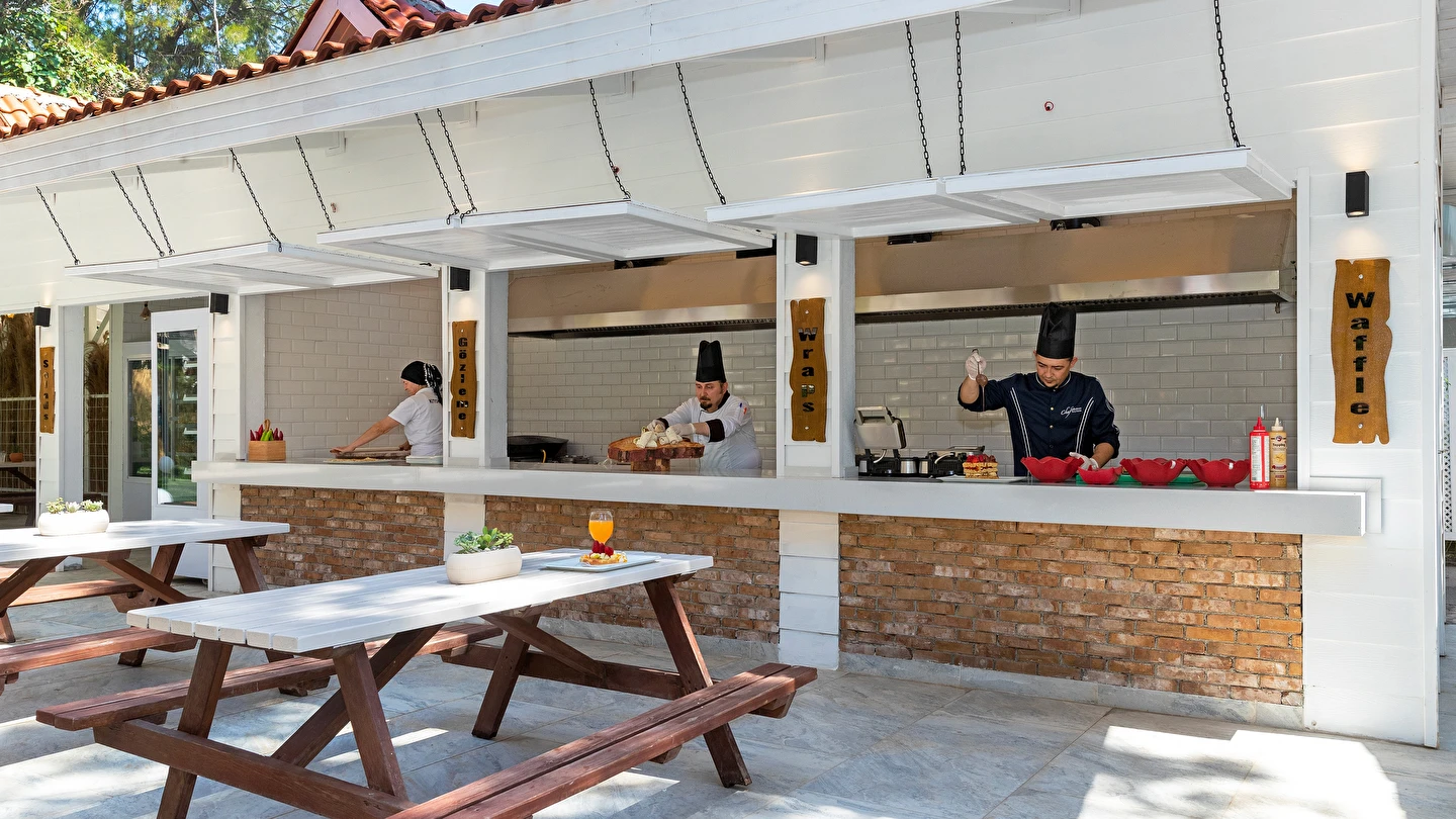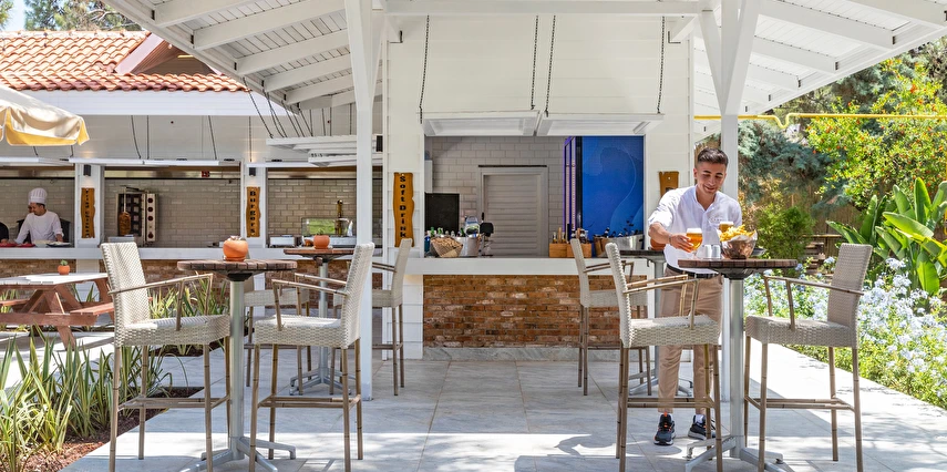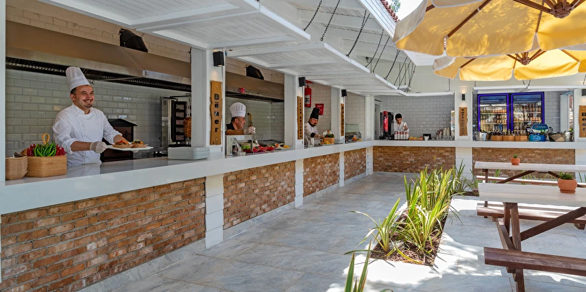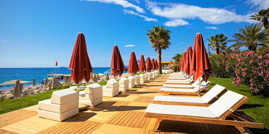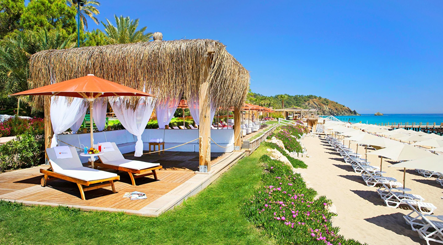 Pavillion Hizmeti; (Ücretli) 10:00 ile 18:00 saatleri arasında plajdaki pavilyonlarda bir gün öncesinden rezervasyon yapılarak hizmet alınabilir.