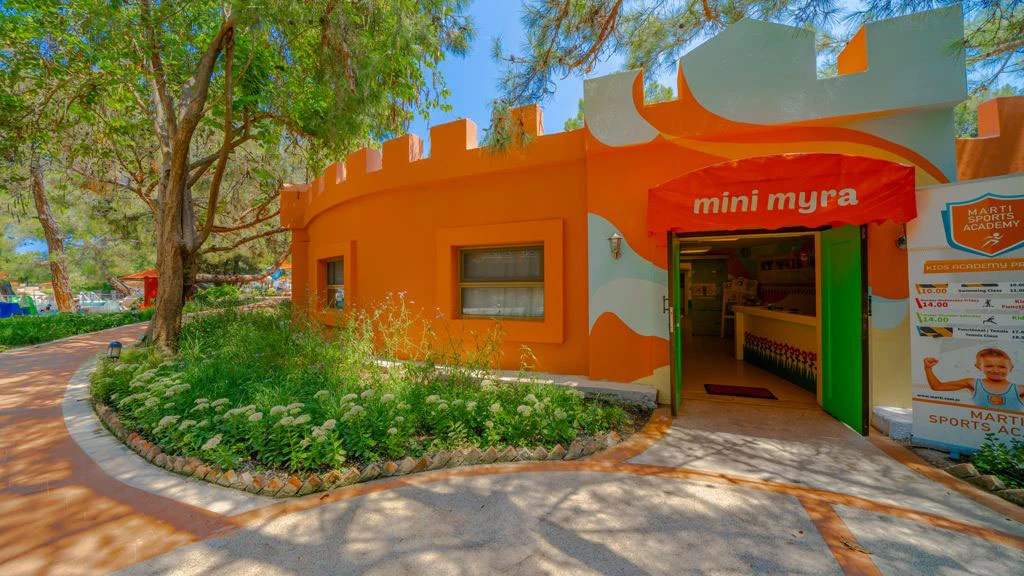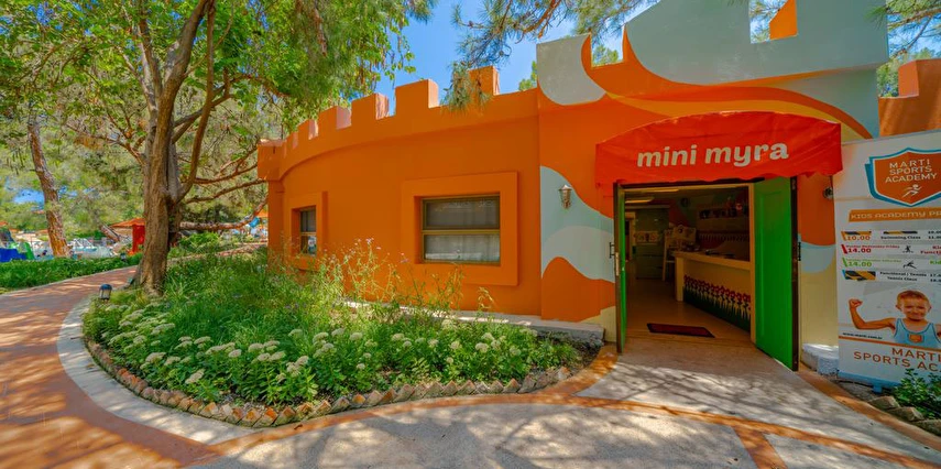 Mini Myra; 4 ile7 yaş ve 8 ile 12 yaş grubu çocuk misafirler için çeşitli aktiviteler sunulmaktadır. (10:00 ile 12:30 / 14:00 ile 17:30 / 19:00 ile 21:00 saatler arasında). Kapalı Oyun Alanı, Açık Hava Oyun Alanı, Çocuk Bakıcısı (ücretli), Mini Sinema, Akşam Gösterileri, Mini Disko, Farklı Temalı Aktivite Günleri, Çocuk Festivali, Mini Golf, Mini Futbol, Eğitici Oyunlar ve Aktiviteler, Gezi Programları(ücretli), Doğum Günü Partileri(ücretli), Vacana (Çiçek Atölyesi), Martı Spor Akademisi (Tenis ve Yüzme Grup Dersleri ücretsizdir).