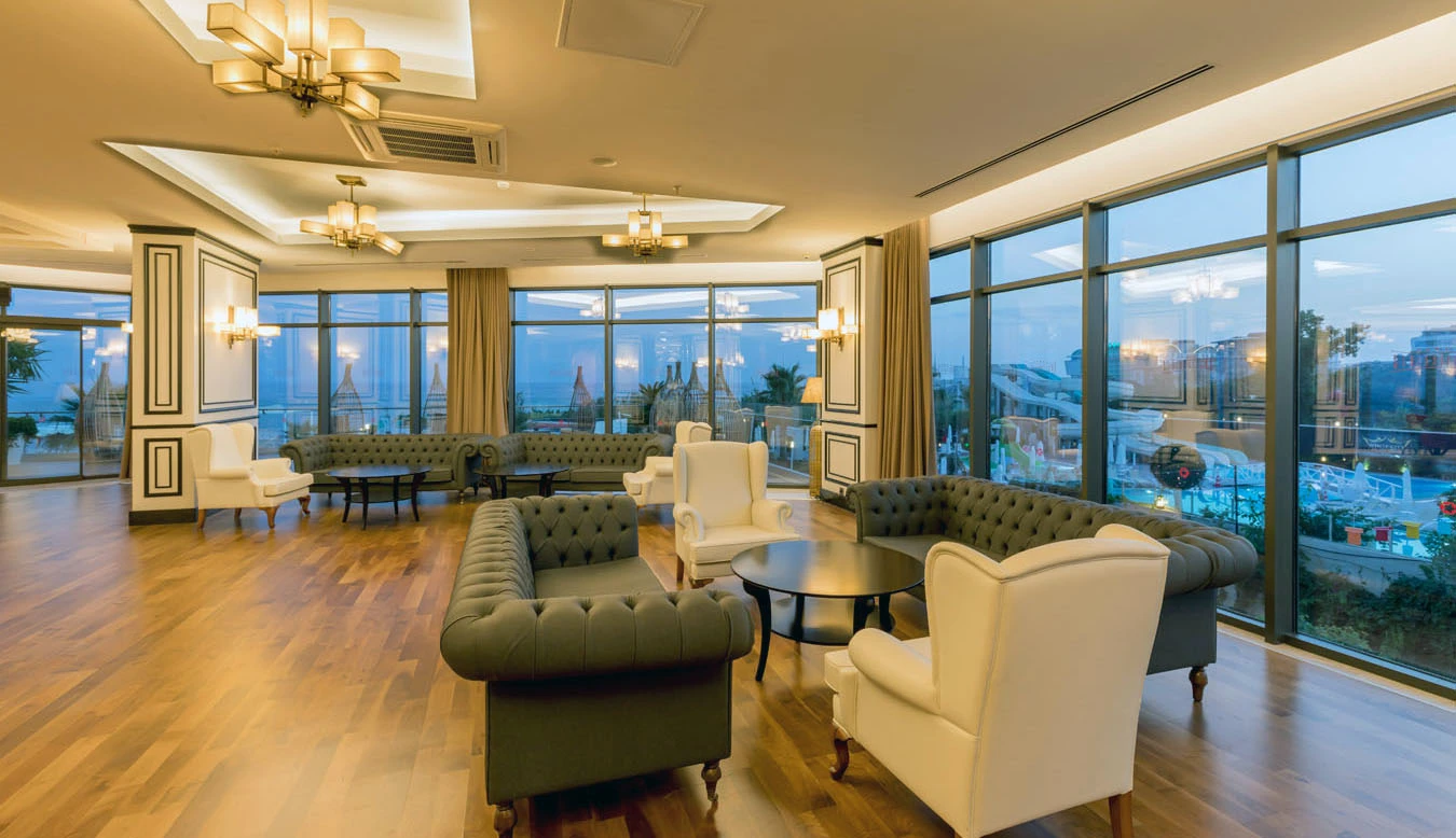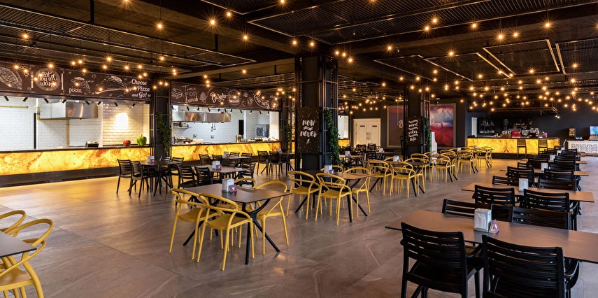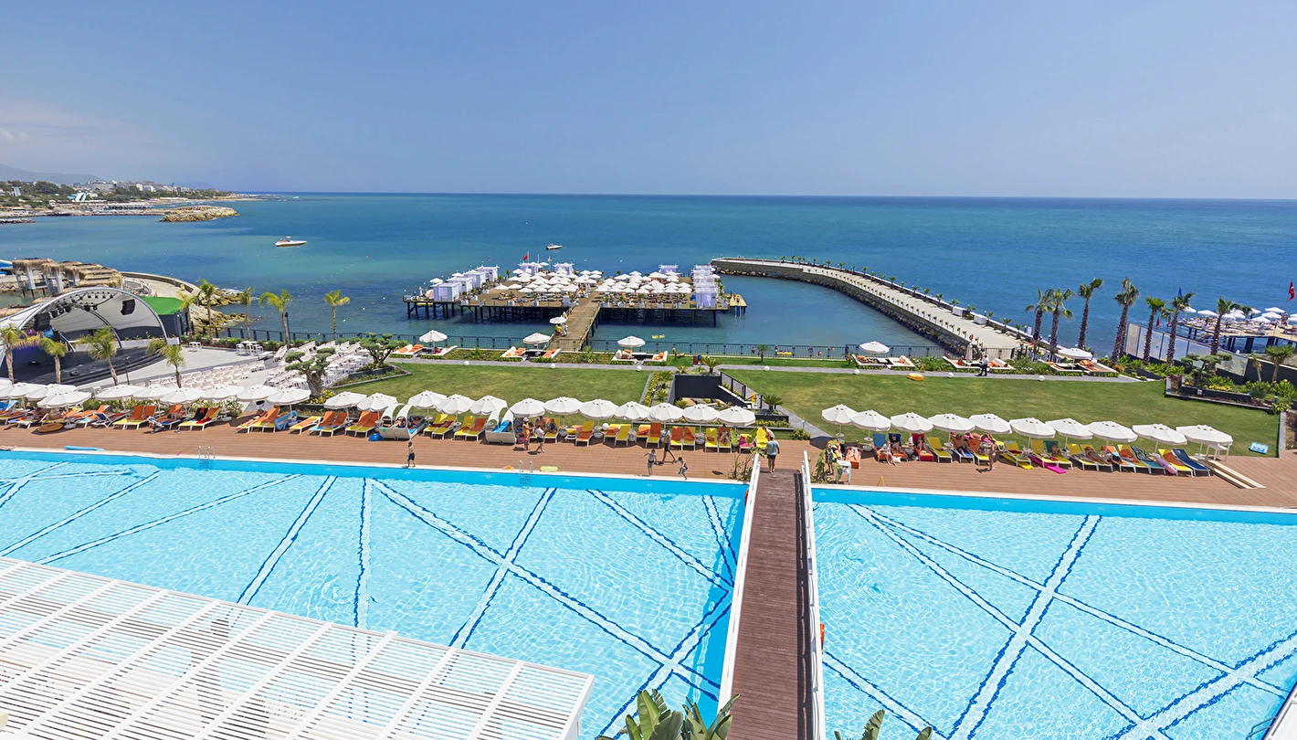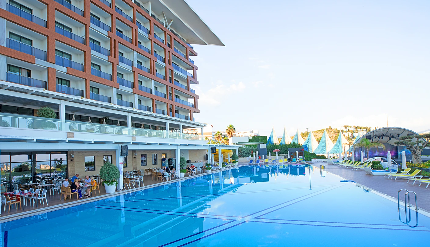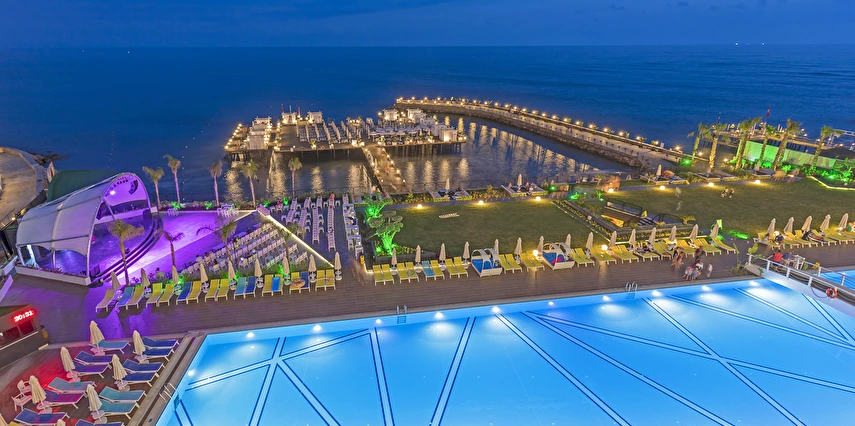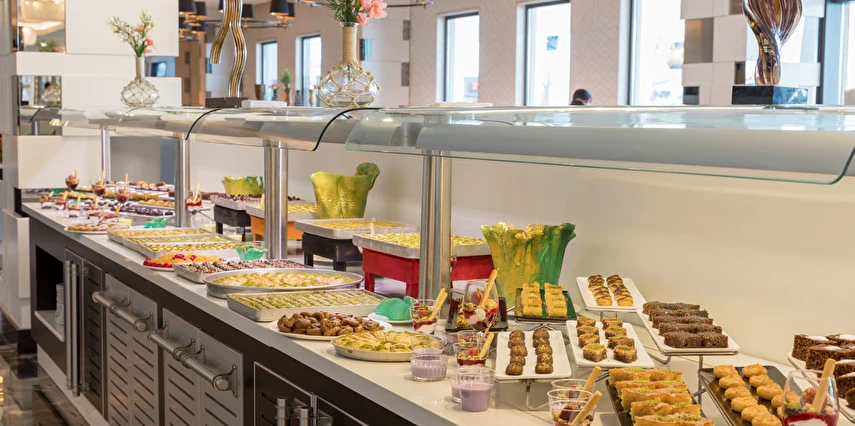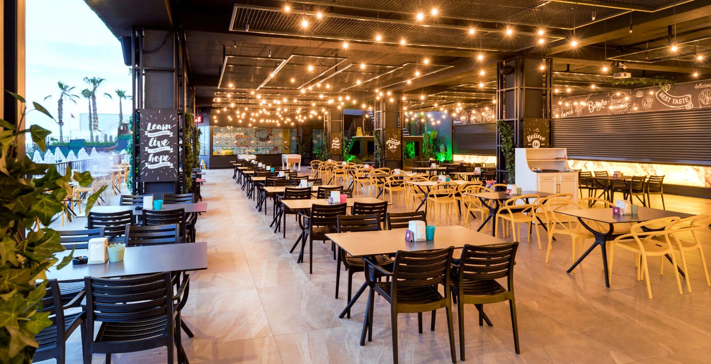 Sabah kahvaltısı, öğle ve akşam yemekleri açık büfe olup, tesisin belirlemiş olduğu markalar dahilinde 24 saat yerli alkollü ve alkolsüz içecekler ve bazı yabancı içecekler ücretsizdir. Türk Kahvesi ücretsizdir. Bazı İthal içecekler, kutu içecekler, paket dondurma ve taze sıkılmış meyve suları ücretli servis edilir.