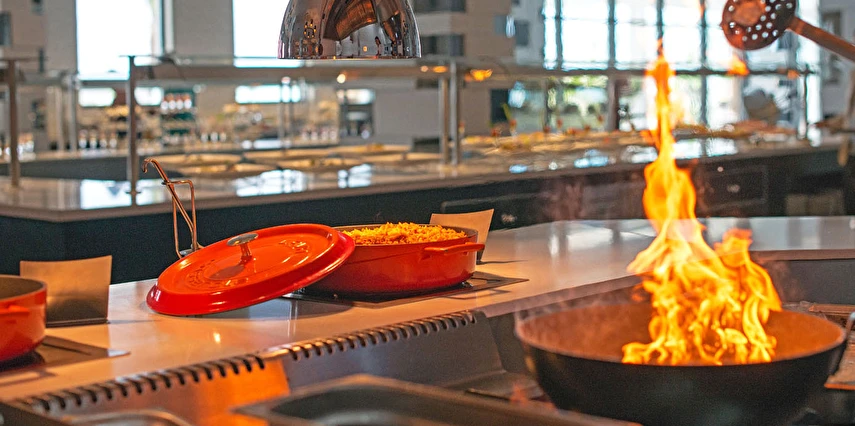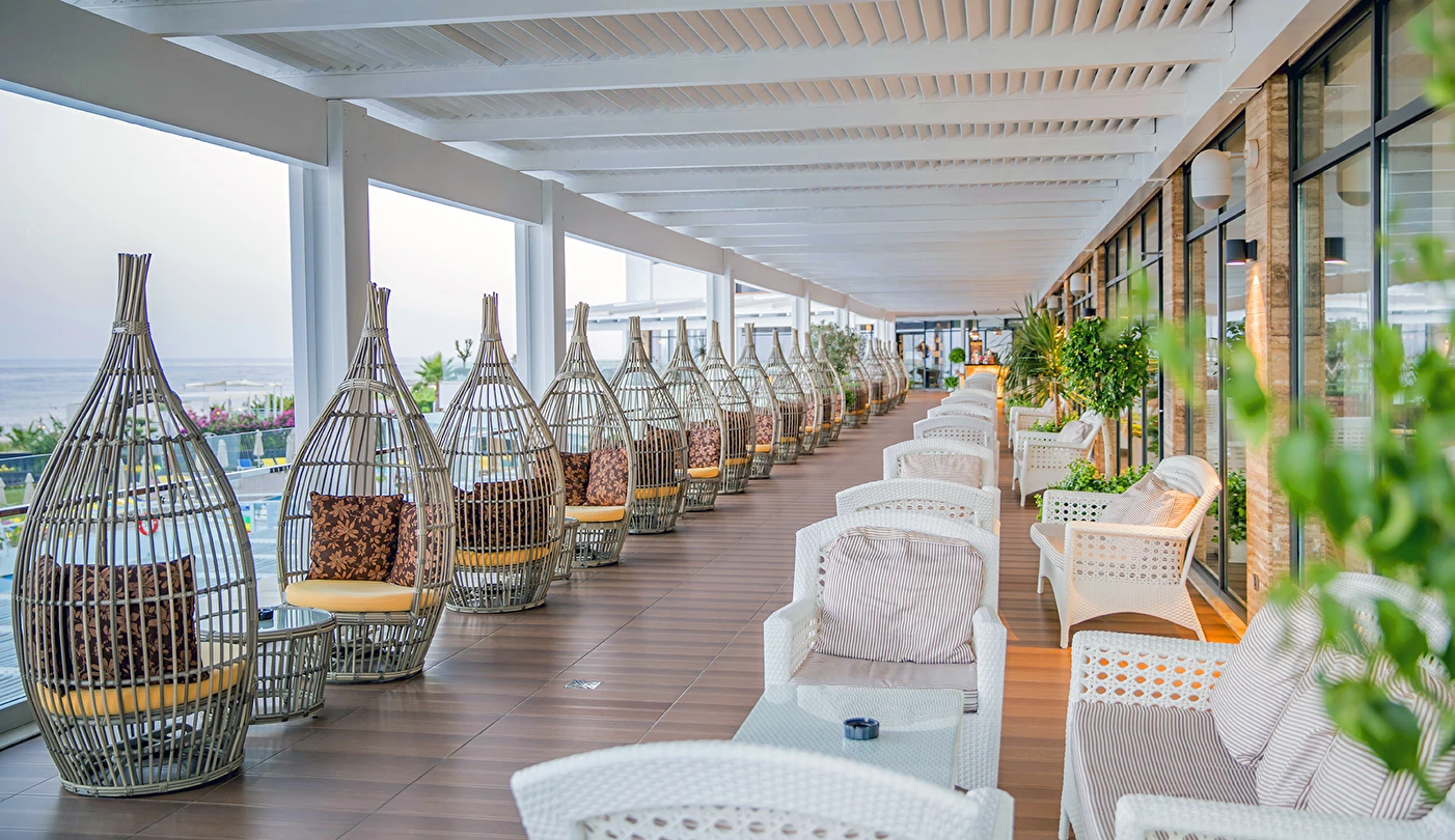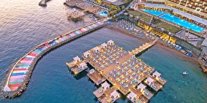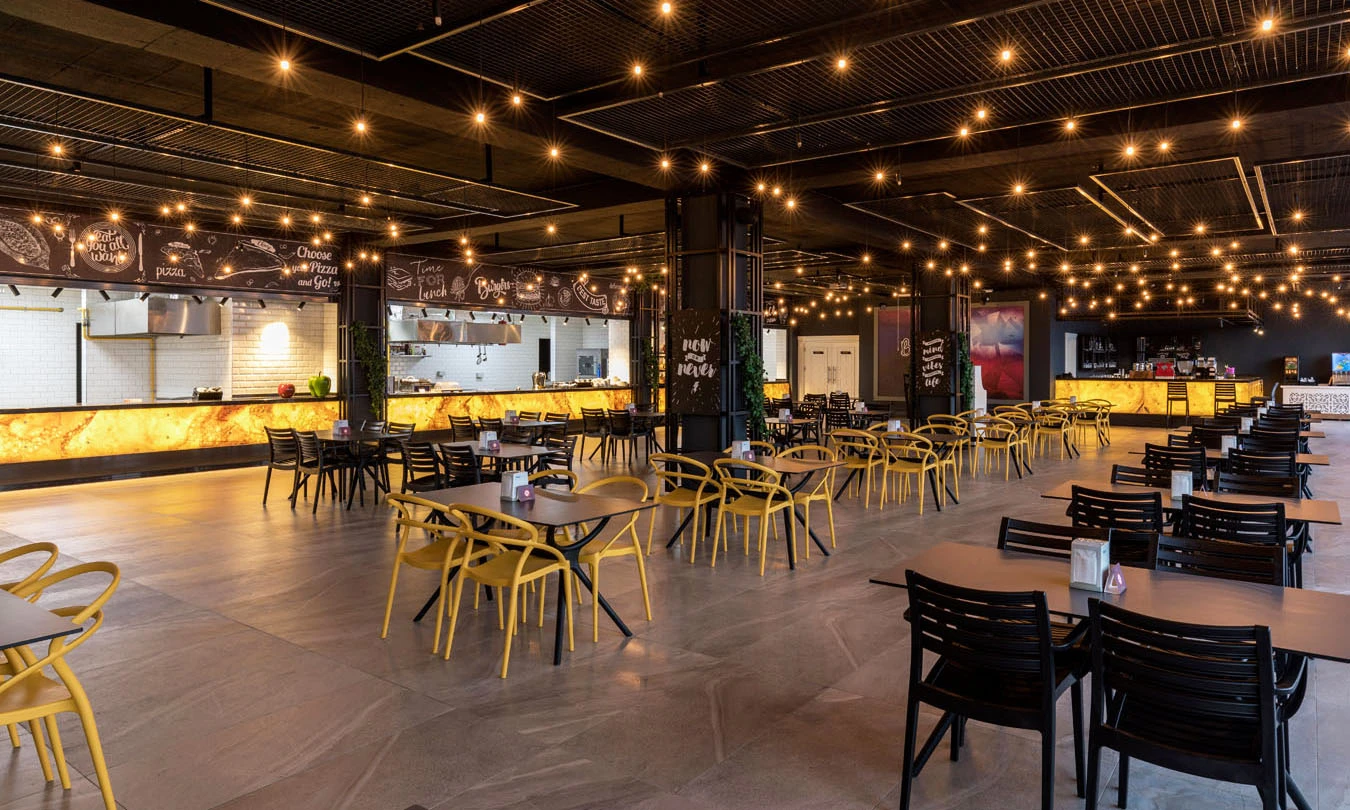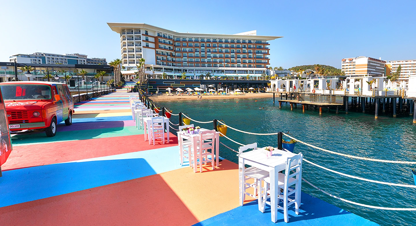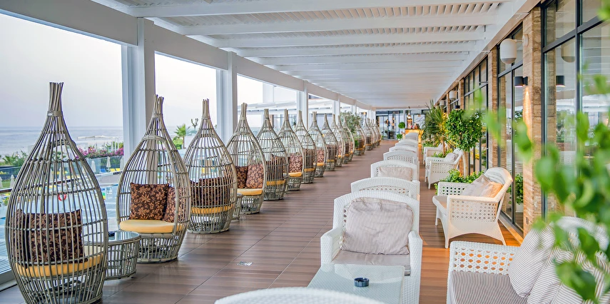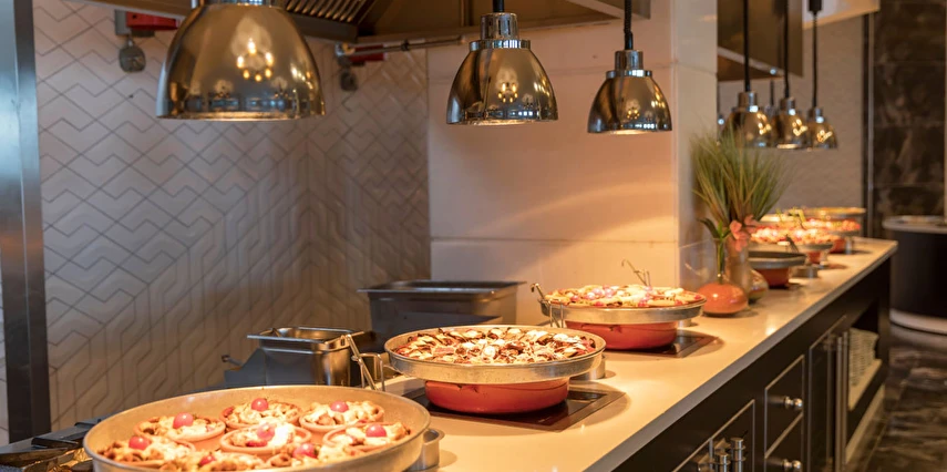 Sabah kahvaltısı, öğle ve akşam yemekleri açık büfe olup, tesisin belirlemiş olduğu markalar dahilinde 24 saat yerli alkollü ve alkolsüz içecekler ve bazı yabancı içecekler ücretsizdir. Türk Kahvesi ücretsizdir. Bazı İthal içecekler, kutu içecekler, paket dondurma ve taze sıkılmış meyve suları ücretli servis edilir.