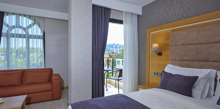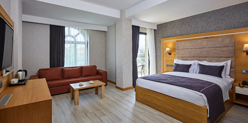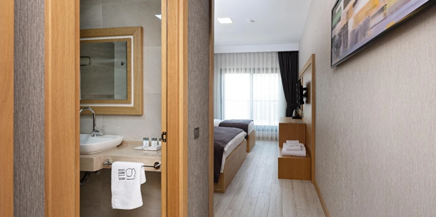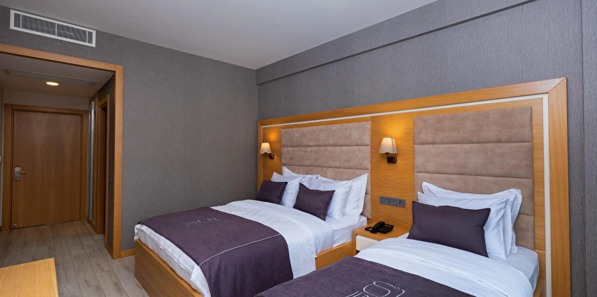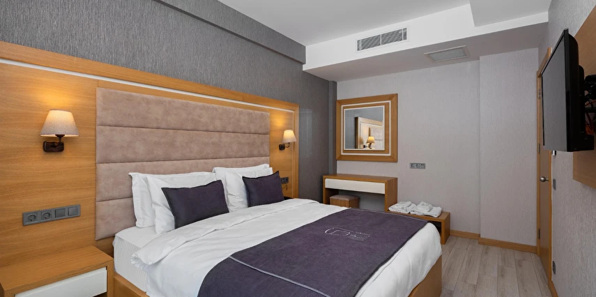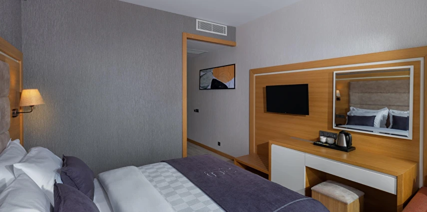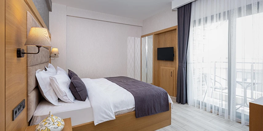 Otelimiz, 21 özenle dekore edilmiş odasıyla misafirlerimize rahat ve ferah bir konaklama imkanı sunar. Her bir oda, modern tasarımıyla öne çıkar ve ihtiyaçlarınızı eksiksiz karşılamak üzere düşünülmüştür. Konforlu yataklar, temiz ve şık banyolar, düz ekran televizyonlar, ücretsiz Wi-Fi erişimi ve minibar gibi olanaklar, konaklamanız boyunca ihtiyaç duyabileceğiniz her şeyi sağlar.