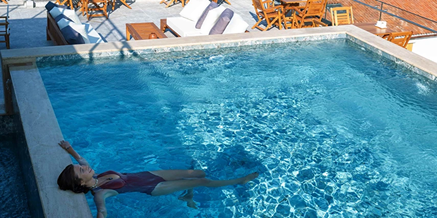 Otelimizin eşsiz terasında sizleri muhteşem bir deneyim bekliyor: Sonsuzluk havuzunda zamanın akışını unutacak, kendinizi rahatlatıcı bir atmosferin içinde bulacaksınız.