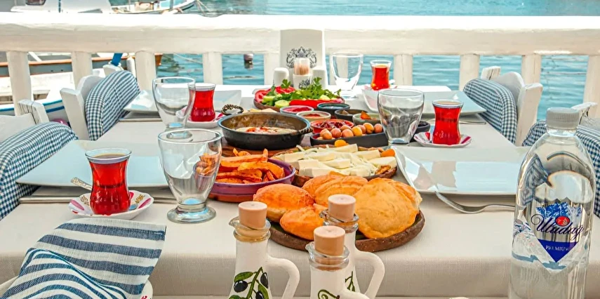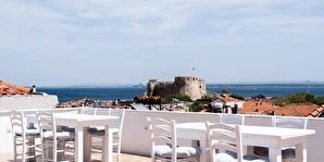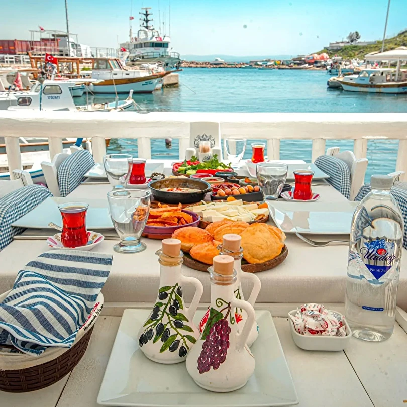Tesisin terasında tipik Bozcaada yapılarını tepeden seyrederken kahvaltı yapmak tam anlamıyla bir zevk. Üstelik otelin manzaralı terasında öğle ve akşam saatlerinde de yörede çok sevilen balıklar ve mezeler servis ediliyor.