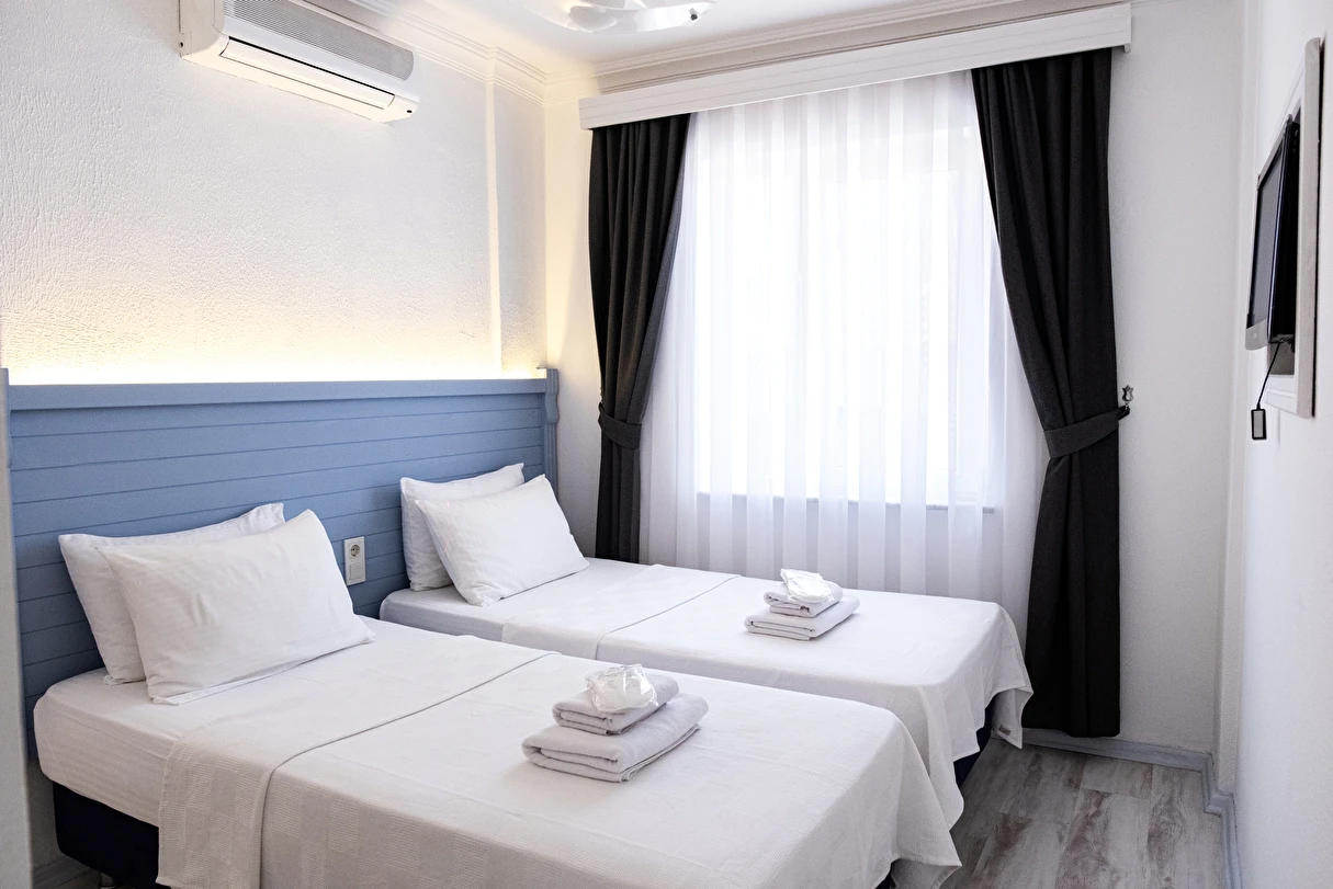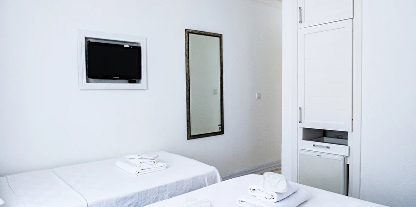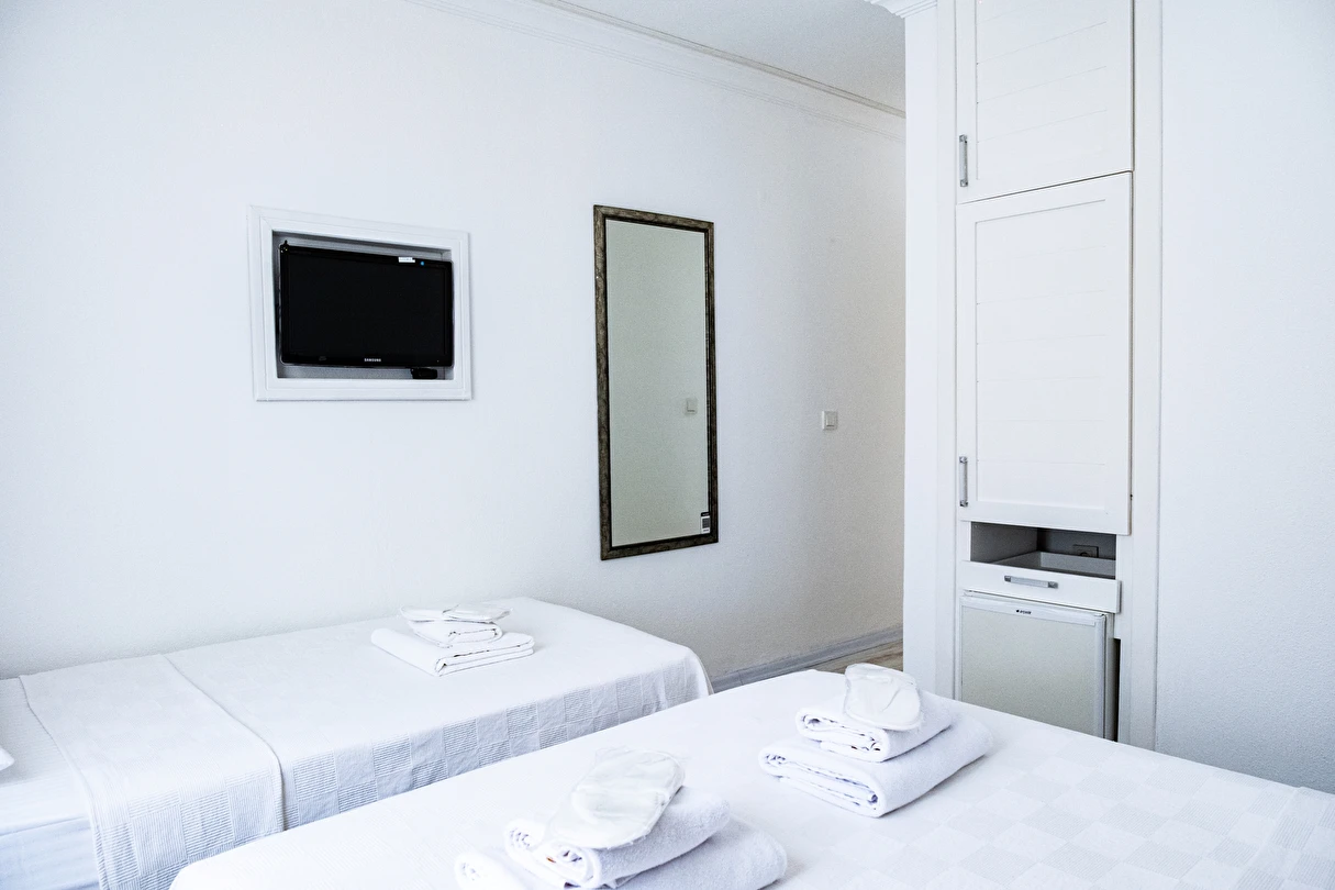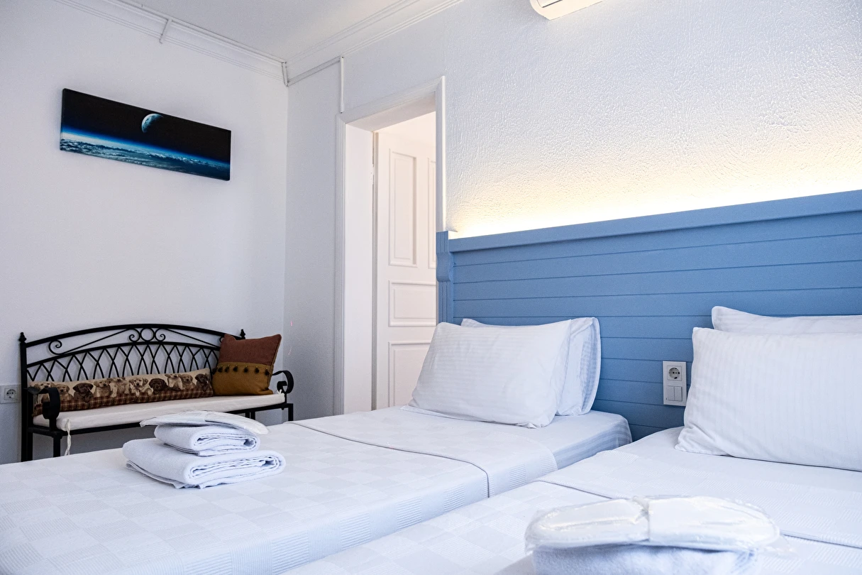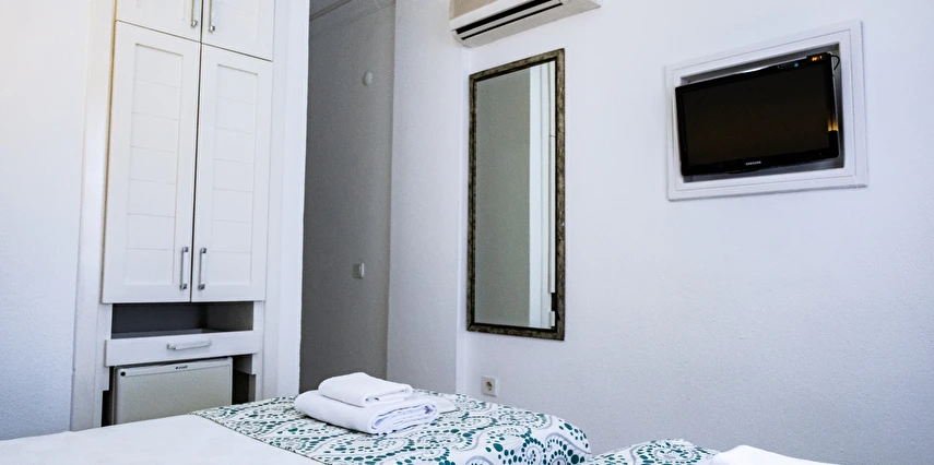 Tesisin özenle dekore edilmiş şık odalarında konforunuz adına ihtiyaç duyabileceğiniz pek çok özellik mevcut. 10 farklı odadan meydana gelen otelin konaklama birimlerinde düz ekranlı televizyon, içerisinde duş bulunan özel banyo, giysi dolabı ve bavulunuzu yerleştirebileceğiniz bölümler yer alıyor. Ayrıca odanızdan her daim hareketliliğini koruyan ada sokaklarını gözlemleyerek tatil keyfinizi arttırabilirsiniz.