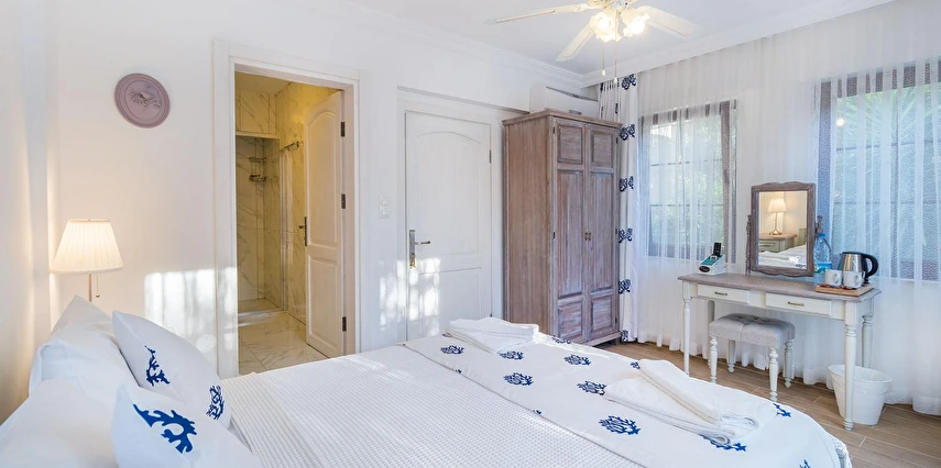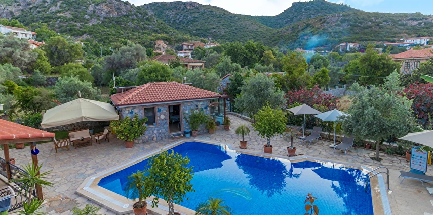 Mavi Deniz Konuk Evi, olağanüstü temiz denize sahip kendi plajında ve iskelesinde misafirlerine dinlenme ve romantik bir akşam yemeği imkanı sunmaktadır. Denize sadece 100 metre mesafedeki konuk evi, yeşil bahçesi ve temiz havası ile doğal köy ortamını olduğu gibi korumaktadır. Mutfağımızda mümkün olduğu kadar köyümüzde yetiştirdiğimiz taze sebzeler kullanılmaktadır.