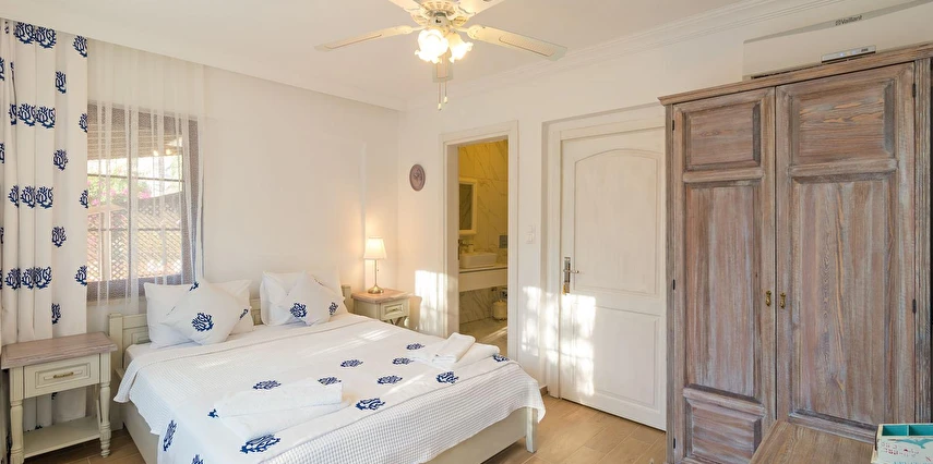 Mavi Deniz Konuk Evi; köy merkezine yakın konumunda olmasıyla birlikte aynı zamanda huzurlu, sakin bir tatil ortamı sunmaktadır. Köy merkezine sadece 400 metre uzaklıkta bulunan Mavi Deniz Konuk Evi, kendi özel plajı olan Mavi Deniz Plajı'na ise 1 km uzaklıktadır. Yürüyerek 15 dakika, aracınız ile 4 dakika sürmektedir.