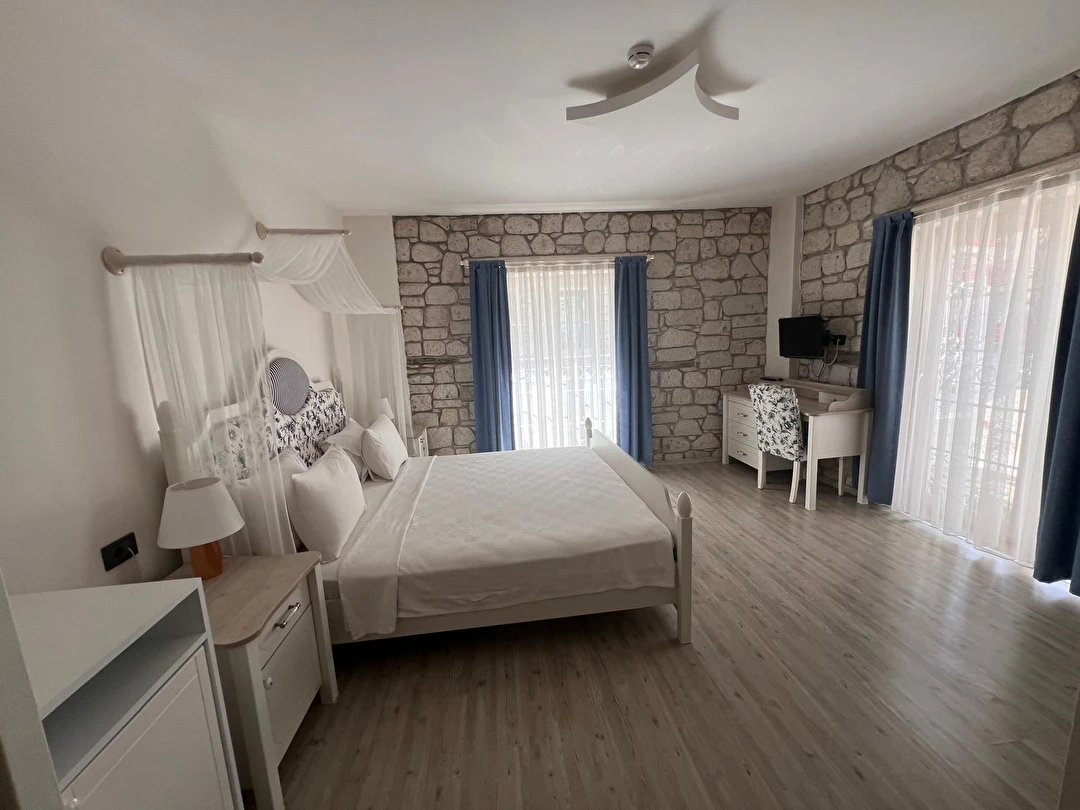 Mavi Konak Alaçatı Otel’de toplam 15 adet oda yer alıyor. Standart Oda, Cumbalı Oda, Deluxe Oda gibi farklı özelliklere ve olanaklara sahip olan konaklama seçeneklerinde; merkezi klima, LCD TV, mini bar, mama sandalyesi, bebek karyolası, ücretsiz Wi-Fi erişimi ve kablosuz internet, saç kurutma makinesi, banyo malzemeleri ve Fransız balkon bulunuyor.