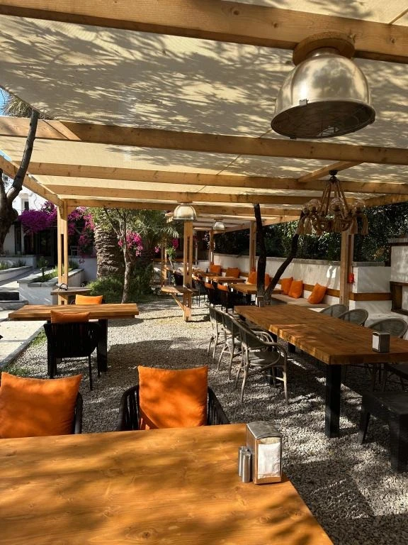 Tesis bünyesinde açık restoran ve bar hizmetleri bulunur; yöresel tatlar ve zengin kahvaltı seçenekleri ile gününüzü lezzetli bir şekilde tamamlayabilirsiniz. Bahçede dışarıda yemek keyfi yapmak da mümkündür.