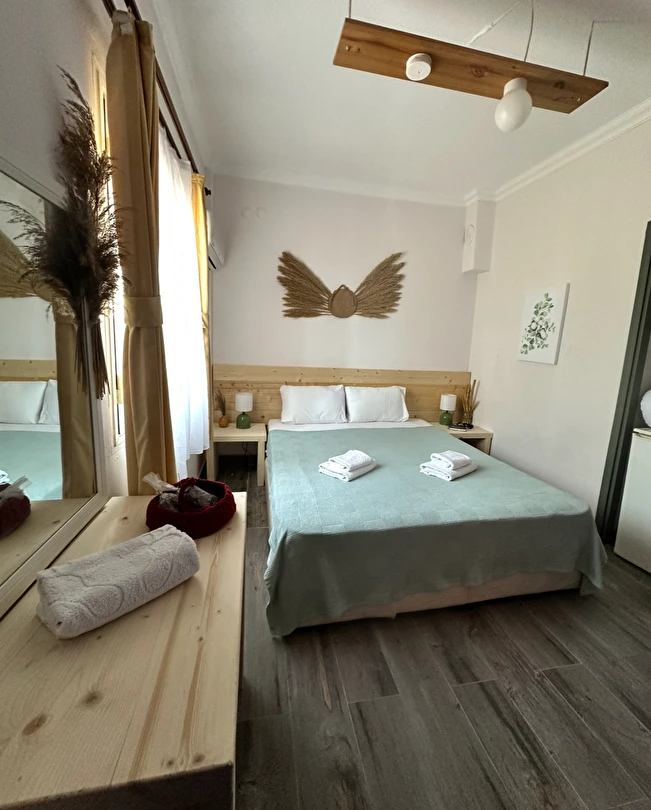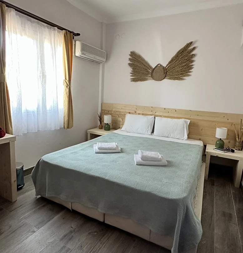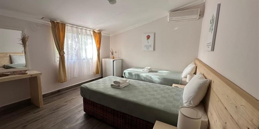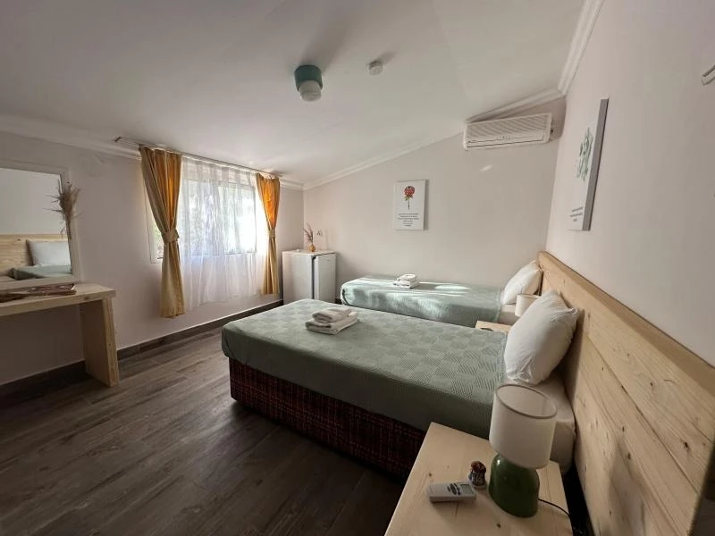 Mavi Lotus Pansiyon oda‑kahvaltı konseptiyle hizmet verir ve farklı oda seçenekleriyle çiftler, aileler veya arkadaş grupları için uygun çözümler sunar. Tüm odalar özel banyolu olup klima, mini buzdolabı, balkon/veranda gibi temel konfor unsurlarına sahiptir. Bahçe ve ortak alanlarda dinlenebileceğiniz huzurlu bir atmosfer bulunur.