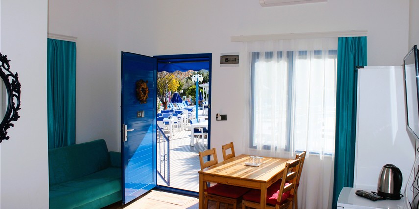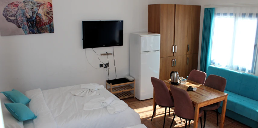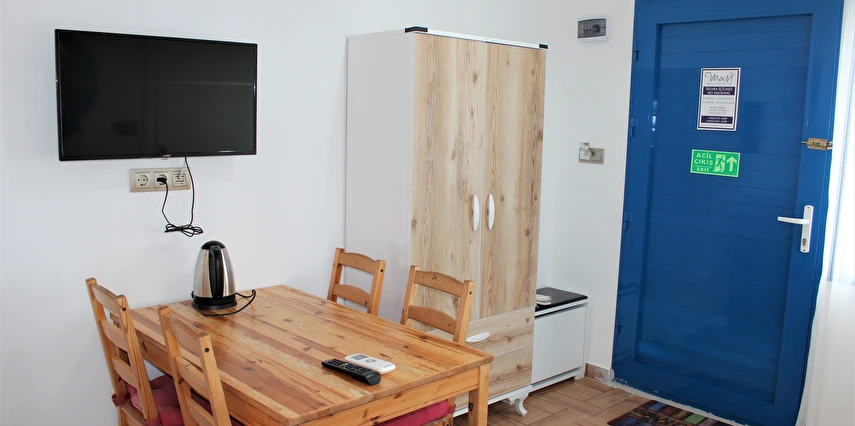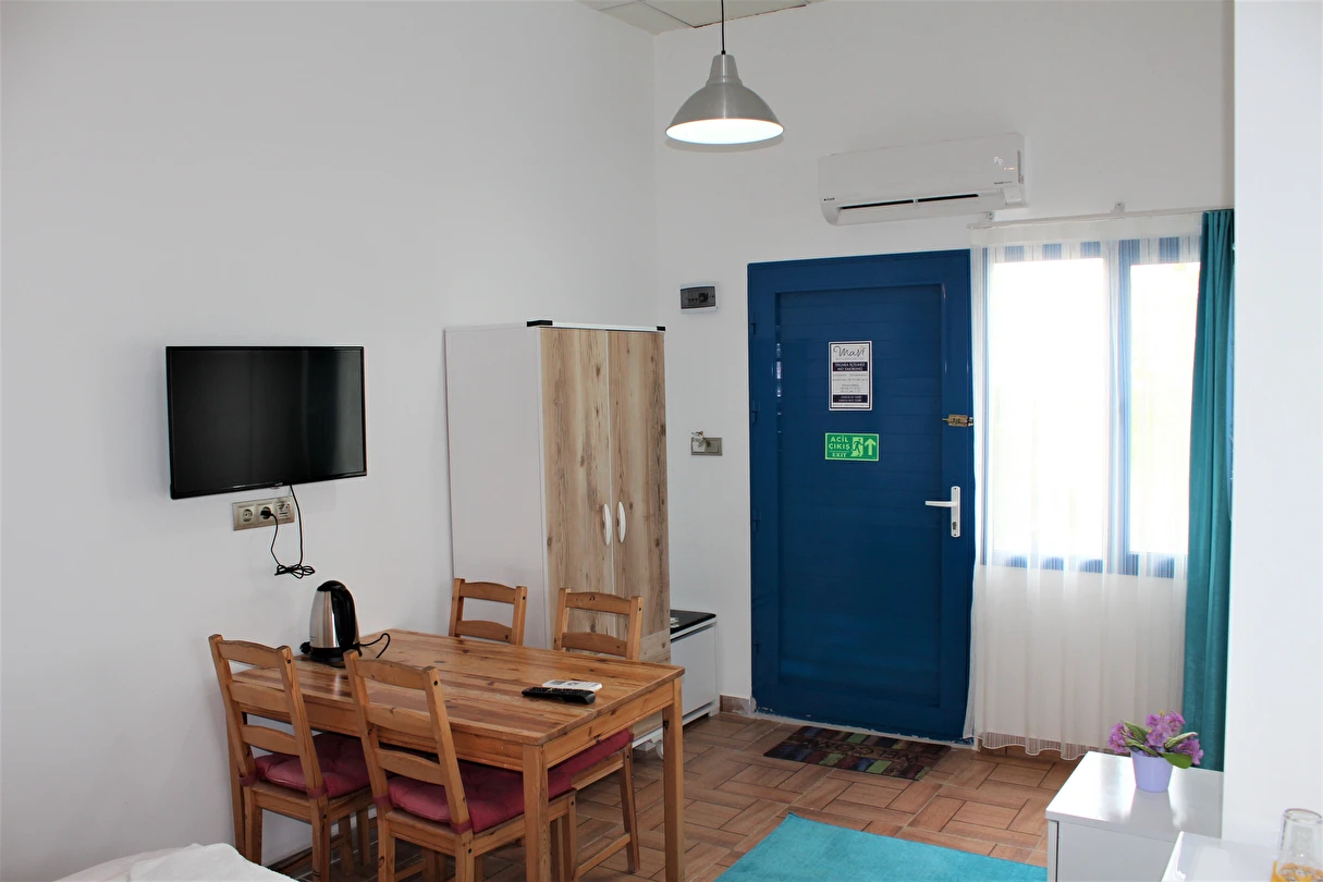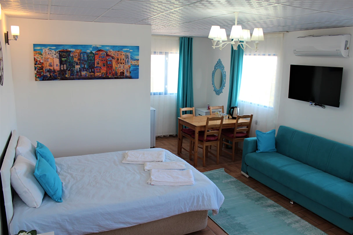 -Apart Daire Konseptlerimiz Restaurant ve Yüzme Alanı Dışarısında Olup Rezervasyon Yaptığınız Apart Daireye Göre 100 ila 200 Metre Yürüme Mesafesindedir. Apart Dairelerde Kalan Misafirlerimizin Tesis İmkanlarından Yararlanabilmek İçin Mavi Restaurant & Bistro’ya Gelmeleri Gerekmektedir. Apart Dairelerimizde Mutfak (Ankastre Ocak, Fırın, Mikrodalga Fırın, Tost Makinesi, Çaymatik, Çamaşır Makinesi, Çamaşır Kurutma Teli, Bulaşık Makinesi, Ütü, Ütü Masası, Saç Kurutma Makinesi, Havlu ve Banyo Ürünleri Mevcuttur..