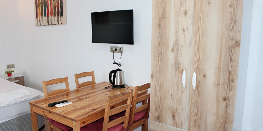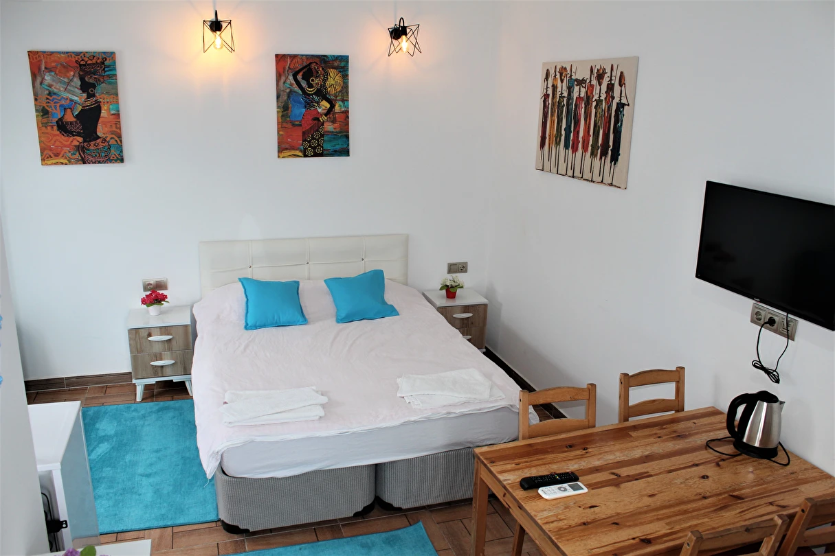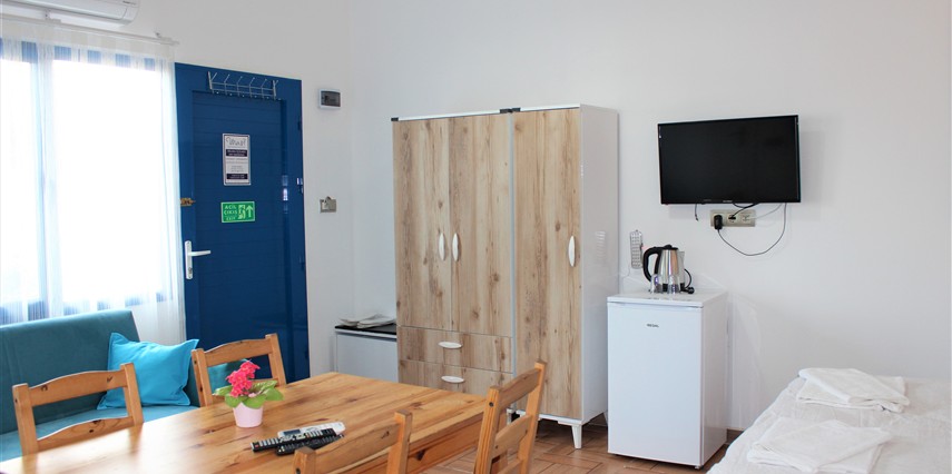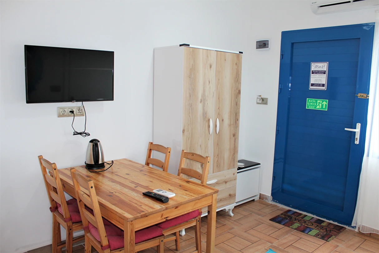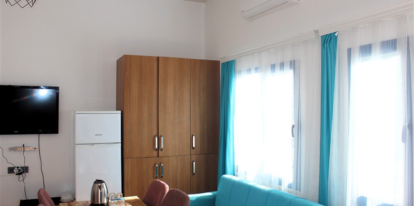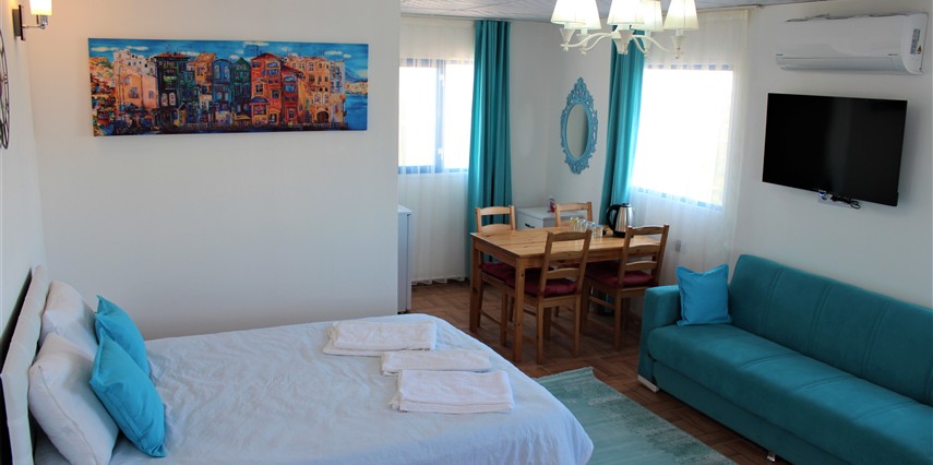 -Apart Daire Konseptlerimiz Restaurant ve Yüzme Alanı Dışarısında Olup Rezervasyon Yaptığınız Apart Daireye Göre 100 ila 200 Metre Yürüme Mesafesindedir. Apart Dairelerde Kalan Misafirlerimizin Tesis İmkanlarından Yararlanabilmek İçin Mavi Restaurant & Bistro’ya Gelmeleri Gerekmektedir. Apart Dairelerimizde Mutfak (Ankastre Ocak, Fırın, Mikrodalga Fırın, Tost Makinesi, Çaymatik, Çamaşır Makinesi, Çamaşır Kurutma Teli, Bulaşık Makinesi, Ütü, Ütü Masası, Saç Kurutma Makinesi, Havlu ve Banyo Ürünleri Mevcuttur..