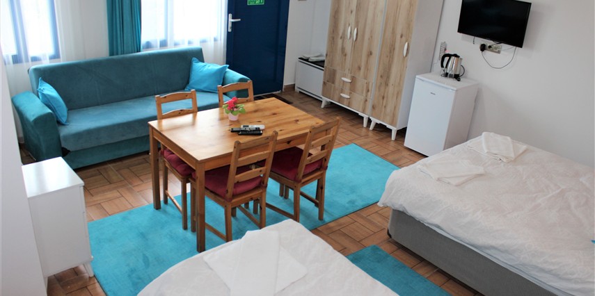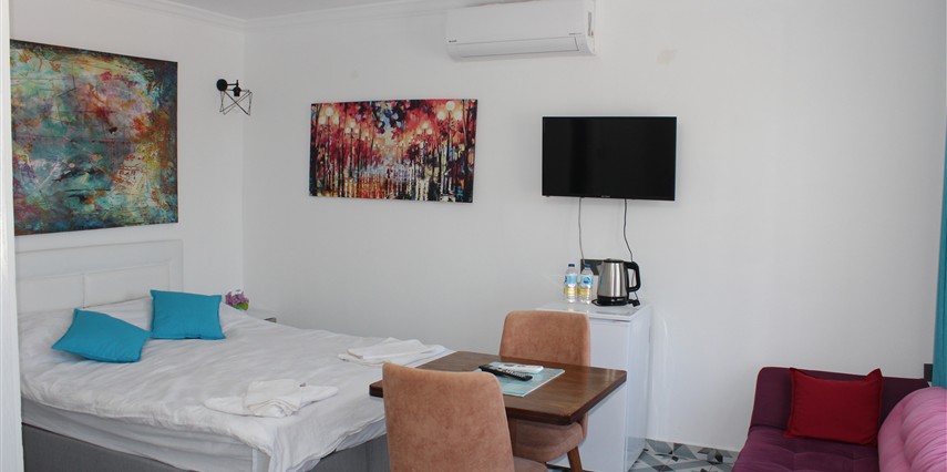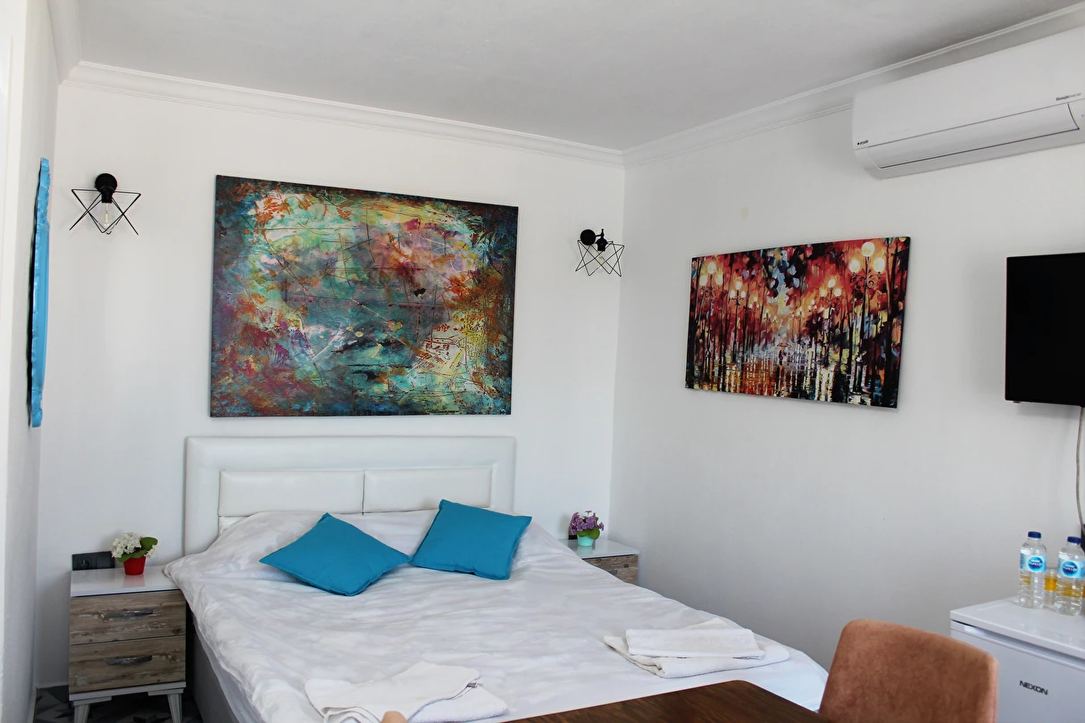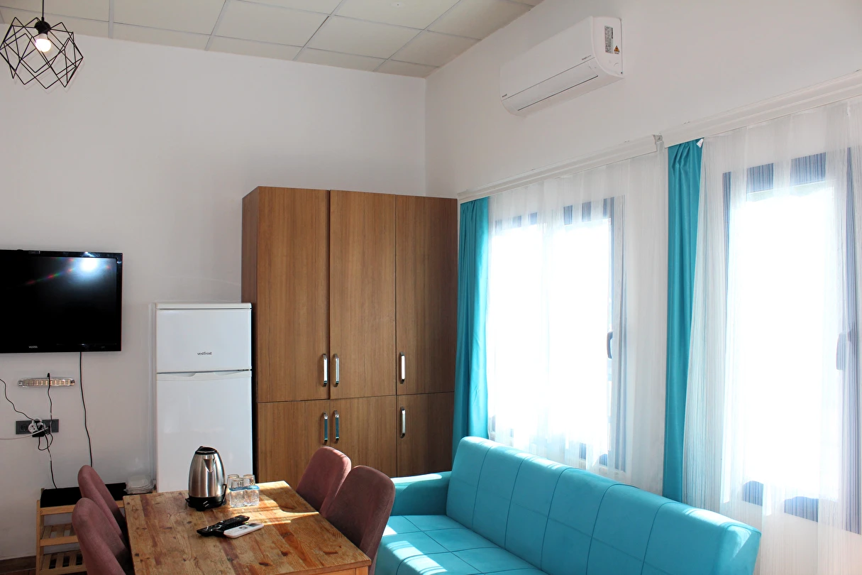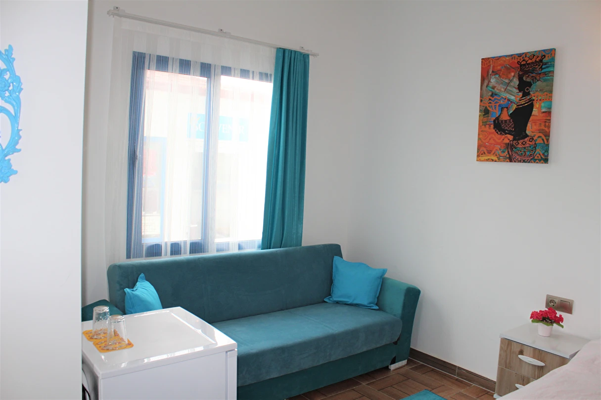 Mavi; Restaurant Hizmetinin Yanında Apart Daire ve Otel Odası Konseptinde Konaklama Hizmeti Vermektedir. Tüm Konaklamalarda Fiyatlandırmamız Kişi Sayısına Göre Yapılmaktadır. Restaurant Alanı İçerisinde Bulunan Ofisimiz Resepsiyon Olarak Kullanılmaktadır.