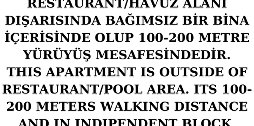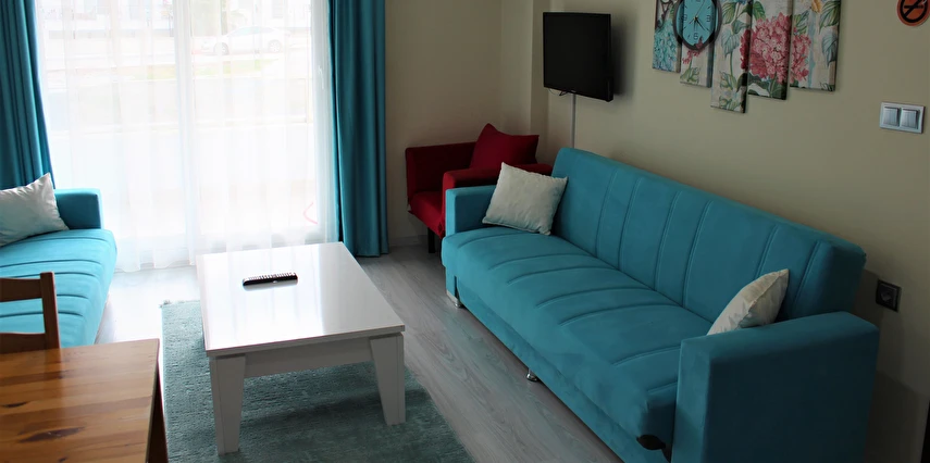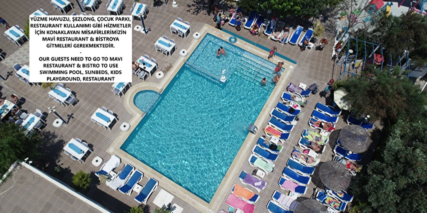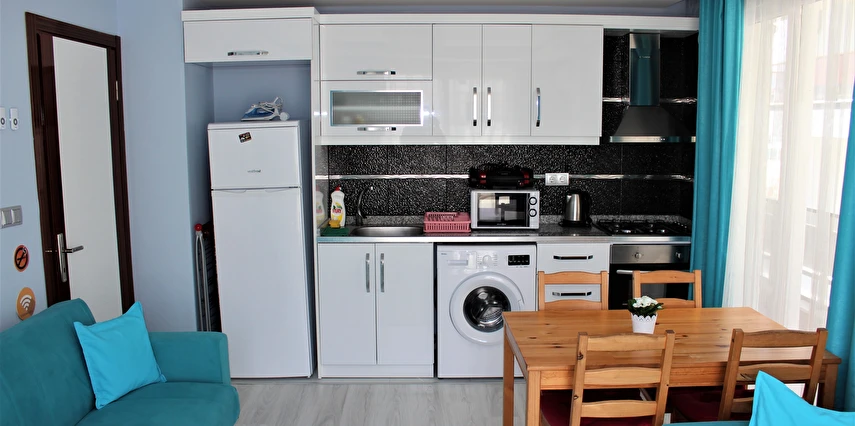 -Apart Daire Konseptlerimiz Restaurant ve Yüzme Alanı Dışarısında Olup Rezervasyon Yaptığınız Apart Daireye Göre 100 ila 200 Metre Yürüme Mesafesindedir. Apart Dairelerde Kalan Misafirlerimizin Tesis İmkanlarından Yararlanabilmek İçin Mavi Restaurant & Bistro’ya Gelmeleri Gerekmektedir. Apart Dairelerimizde Mutfak (Ankastre Ocak, Fırın, Mikrodalga Fırın, Tost Makinesi, Çaymatik, Çamaşır Makinesi, Çamaşır Kurutma Teli, Bulaşık Makinesi, Ütü, Ütü Masası, Saç Kurutma Makinesi, Havlu ve Banyo Ürünleri Mevcuttur.