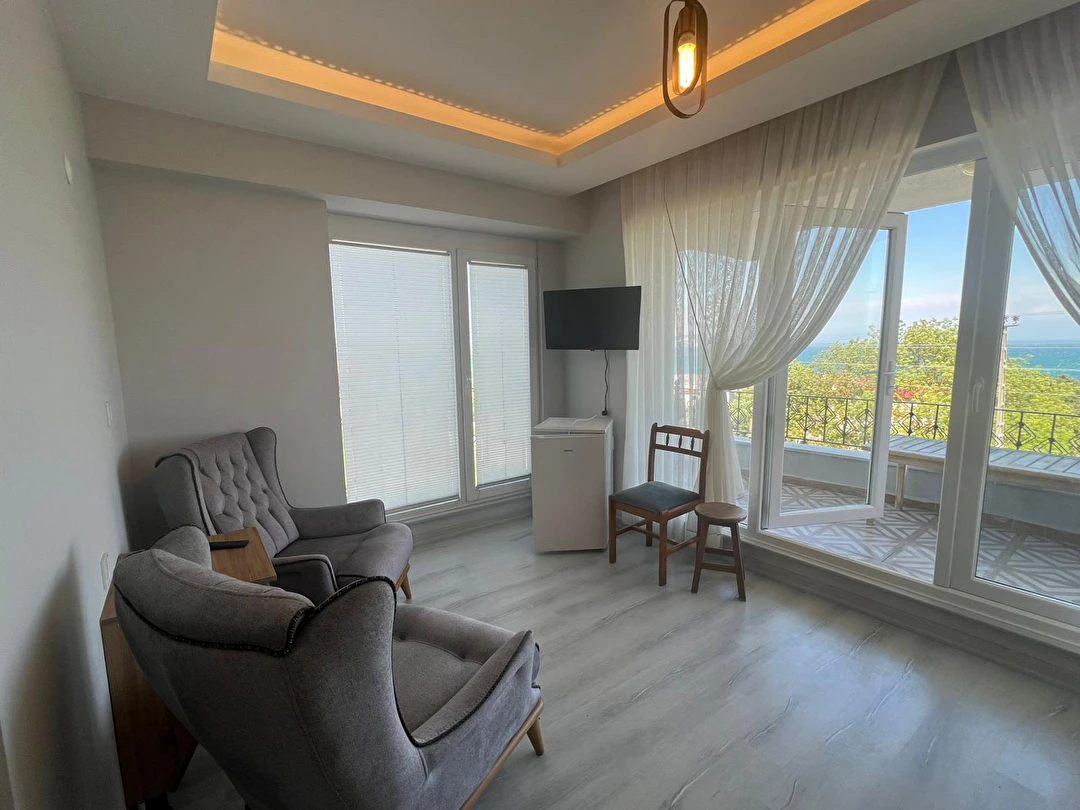 Daha Fazla GösterMavi Koy Otel Sinop, deniz manzaralı konaklama birimleri, ferah daireleri ve güvenli ortamıyla misafirlerine huzurlu bir tatil deneyimi sunmaktadır. Modern ve konforlu şekilde tasarlanmış tüm odalarımızda ücretsiz Wi-Fi, TV, mini buzdolabı, su ısıtıcısı ve kişisel temizlik ürünleri standart olarak yer almaktadır.