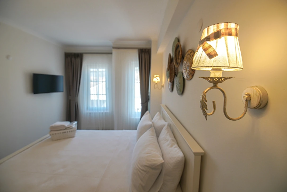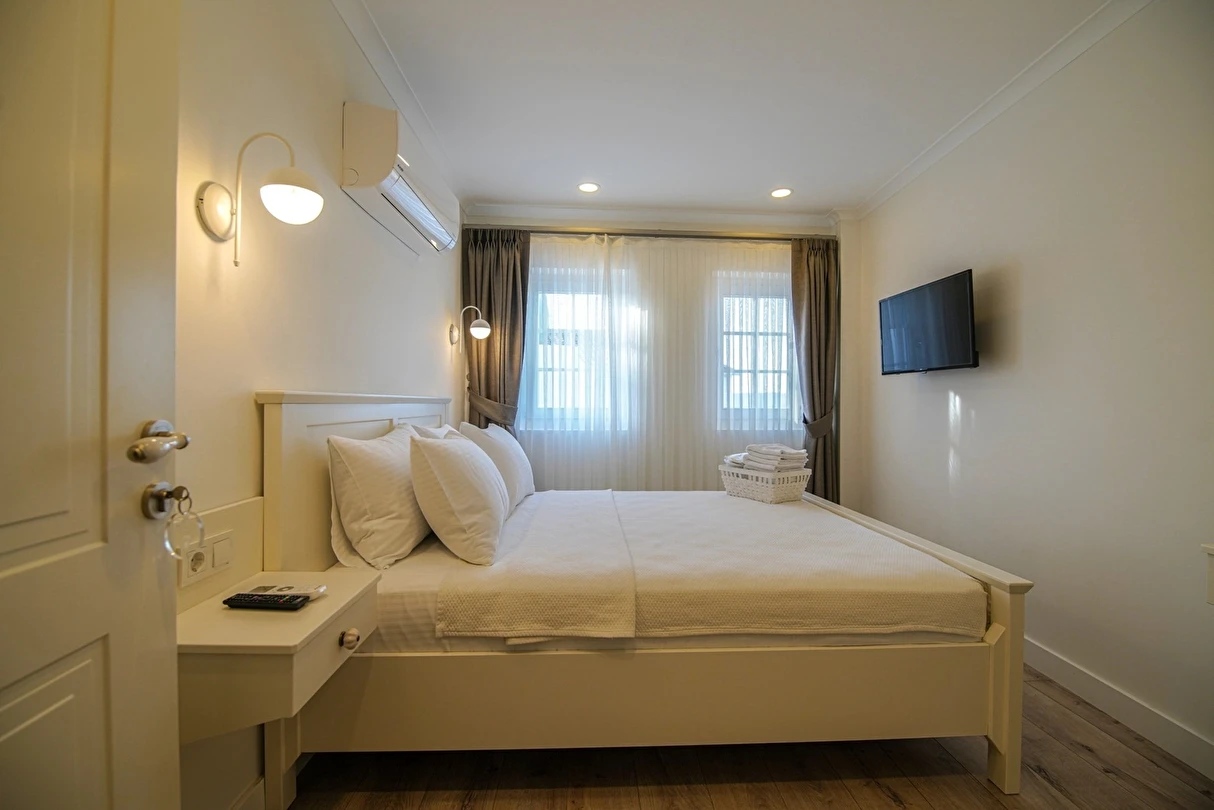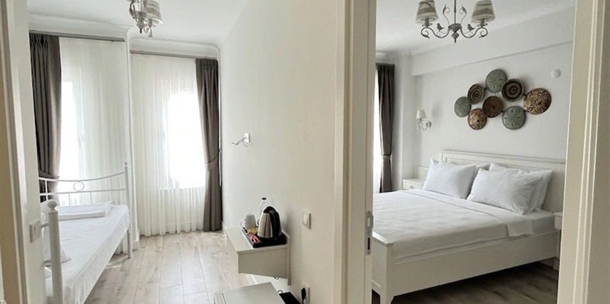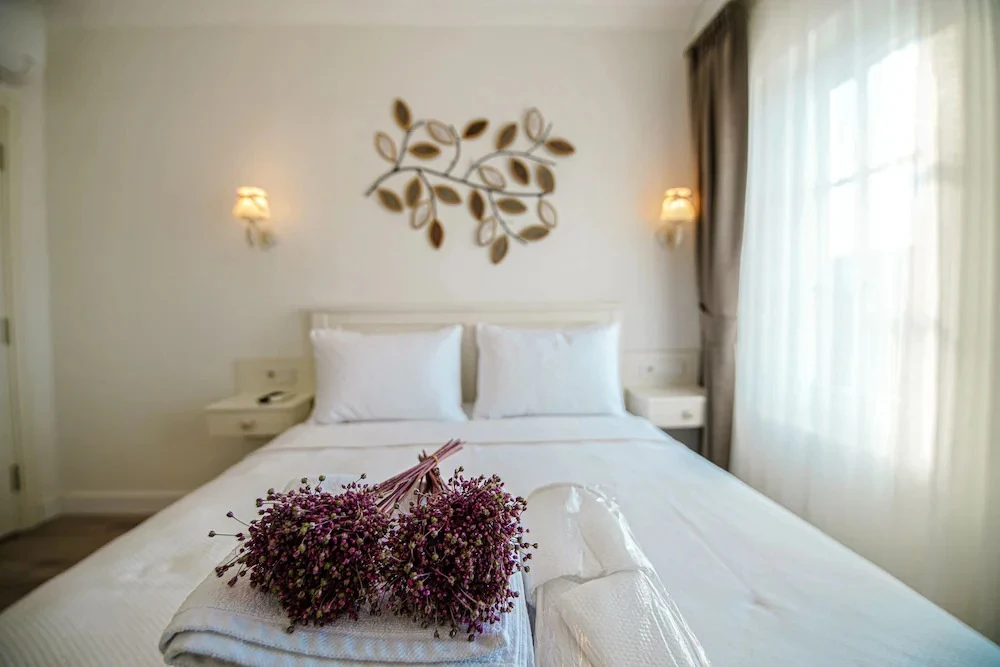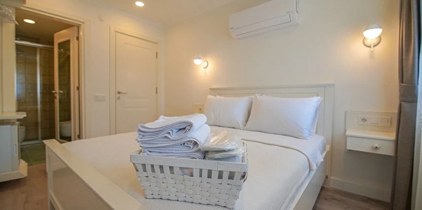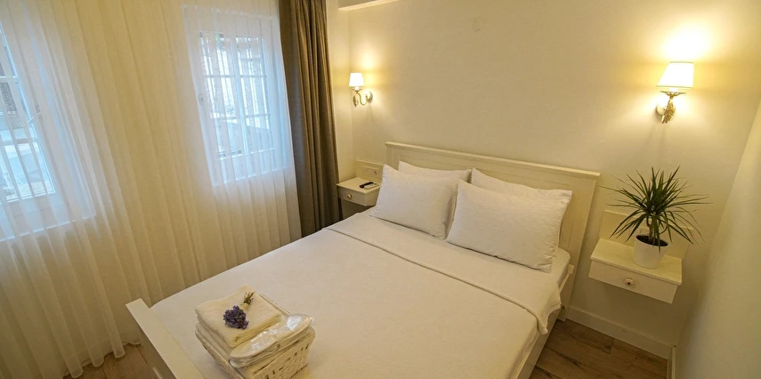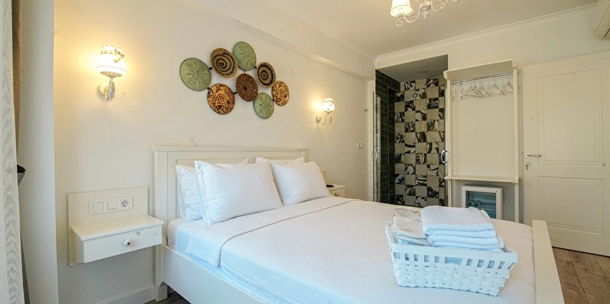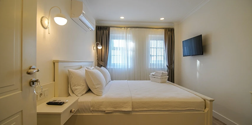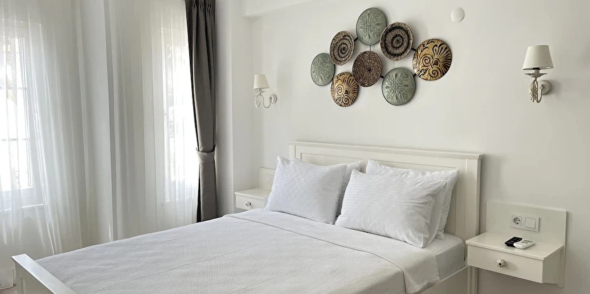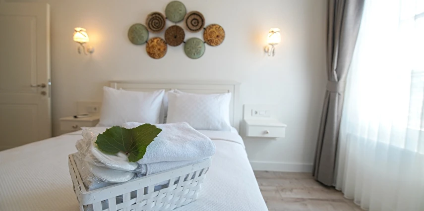 Modern ve zarif detaylarla dekore edilmiş odalar, konforlu yaşam alanları ve Ege’nin dingin ruhunu yansıtan ambiyansıyla dinlenmek isteyenler için ideal bir ortam sağlar.