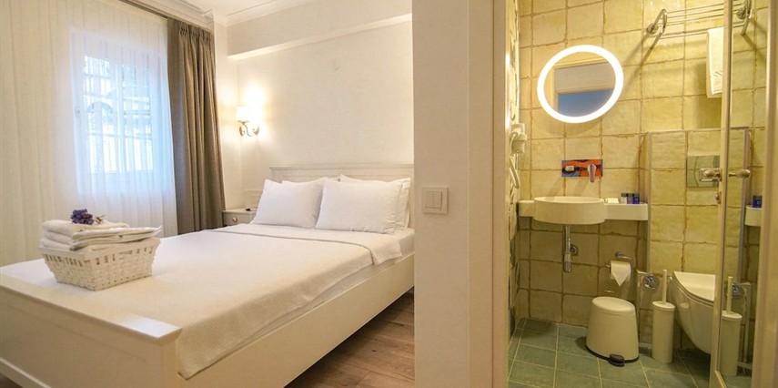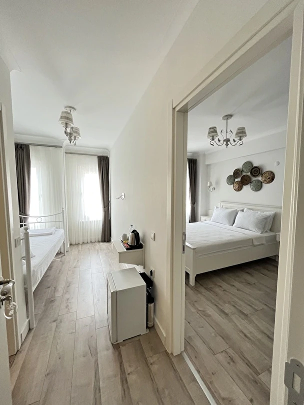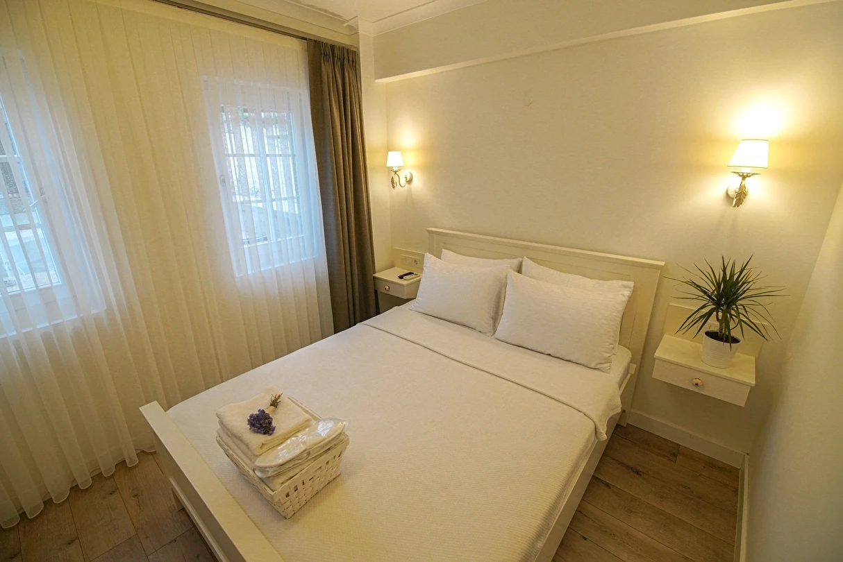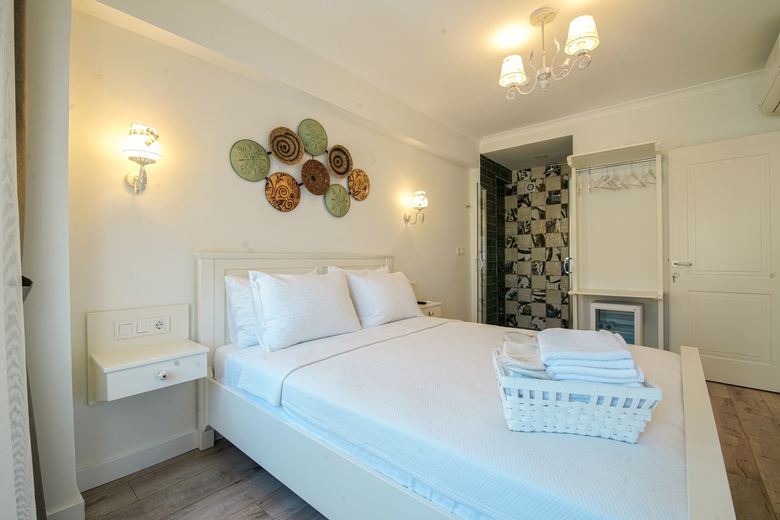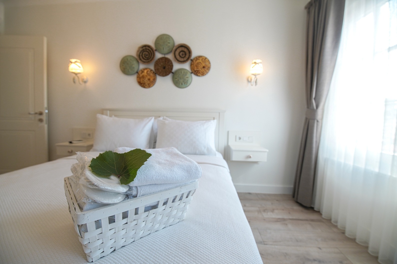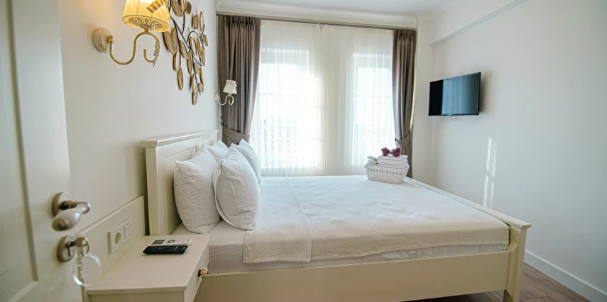 Modern ve zarif detaylarla dekore edilmiş odalar, konforlu yaşam alanları ve Ege’nin dingin ruhunu yansıtan ambiyansıyla dinlenmek isteyenler için ideal bir ortam sağlar.