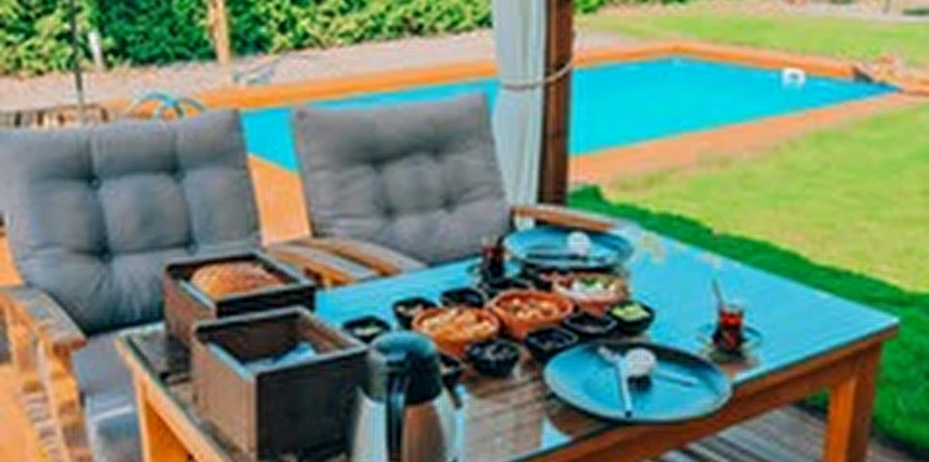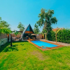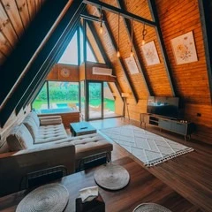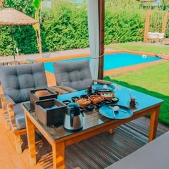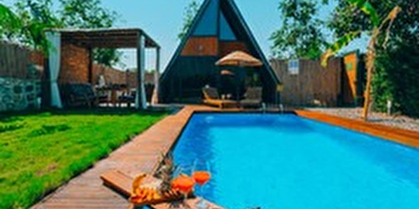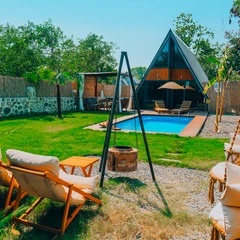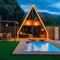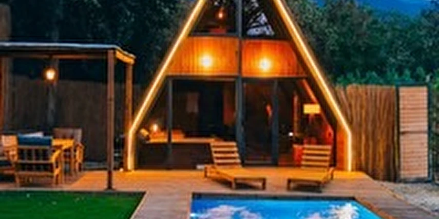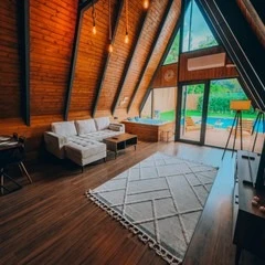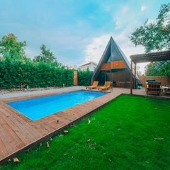Daha Fazla GösterSapanca'nın eşsiz doğasında, dağ manzaralı ve 300 m²'lik izole bir alanda yer alan 5 adet lüks bungalovdan oluşan Maya Sapanca Bungalov, 5 kişilik kapasitesi ile doğayla iç içe huzurlu bir tatil arayanlar için mükemmel bir seçenek. Jakuzi, ısıtmalı havuz, yerden ısıtma ve müstakil bahçe gibi lüks olanaklarıyla, rahatlatıcı ve unutulmaz bir konaklama deneyimi sunuyor.