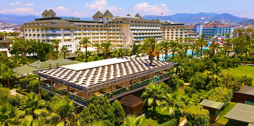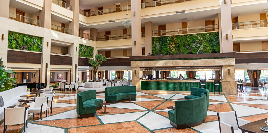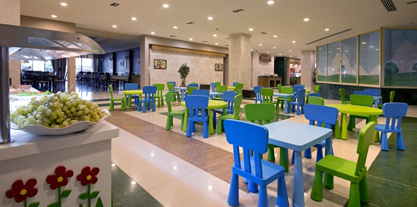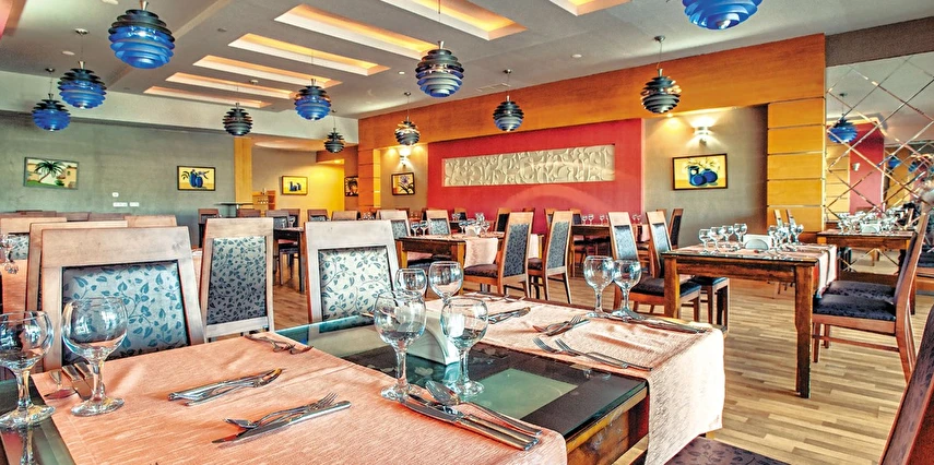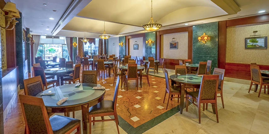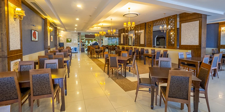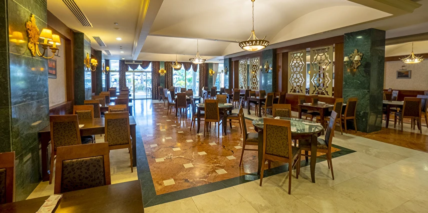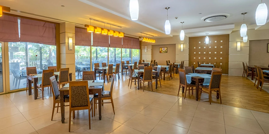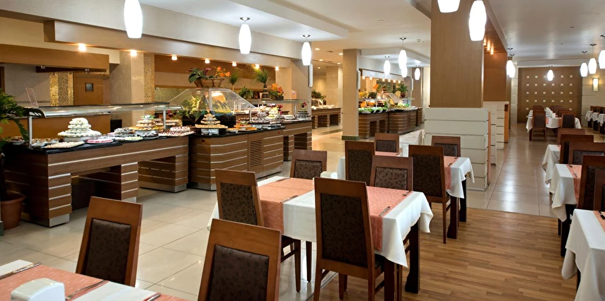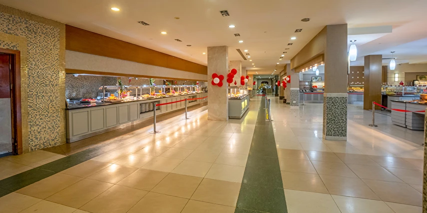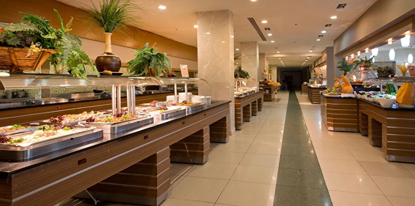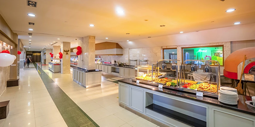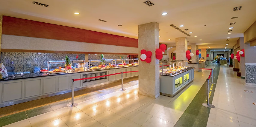 Sabah kahvaltısı, öğle ve akşam yemekleri açık büfe olup, tesisin belirlemiş olduğu markalar dahilinde içecekler 02:00'a kadar ücretsizdir. Lobby Bar'da Türk kahvesi ücretsizdir. Tesiste İthal içecekler, özel lüks içecekler ve Şişe içecekler ücretlidir.