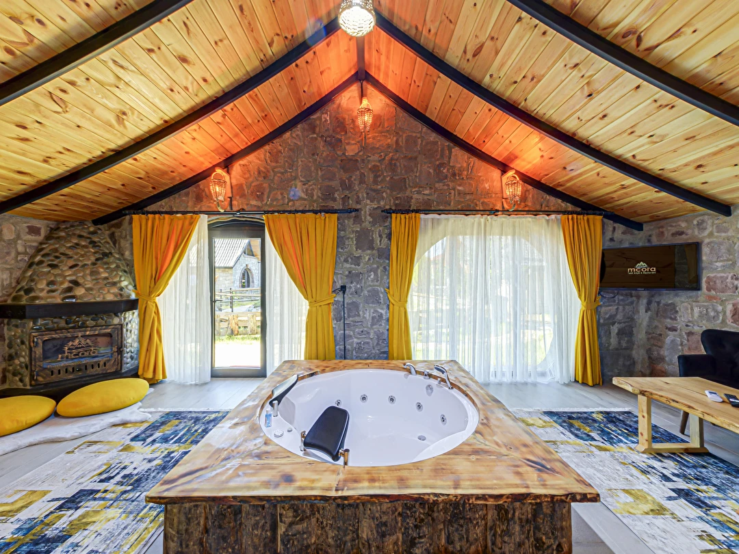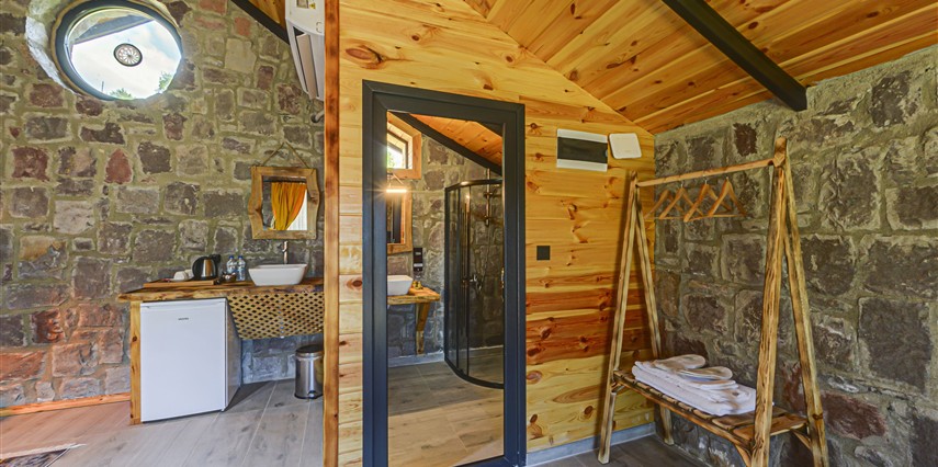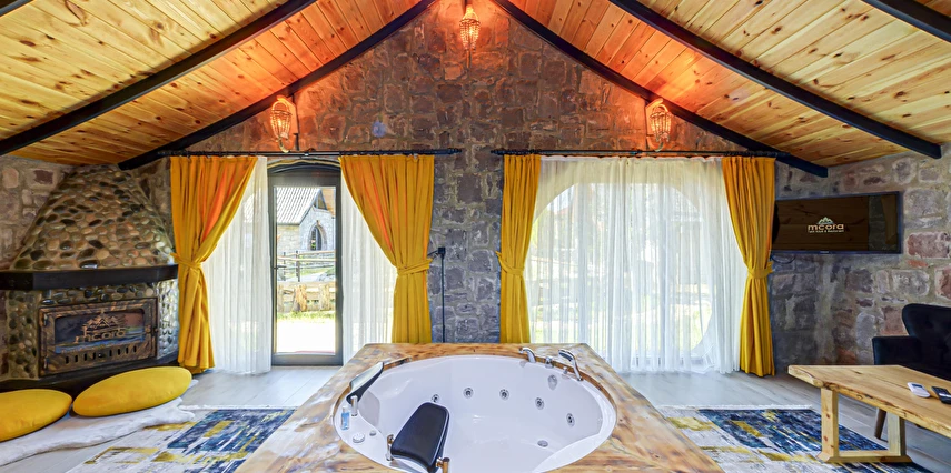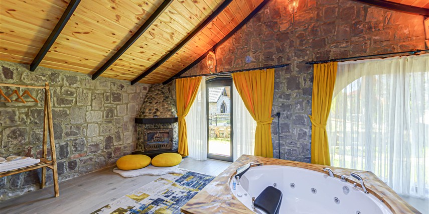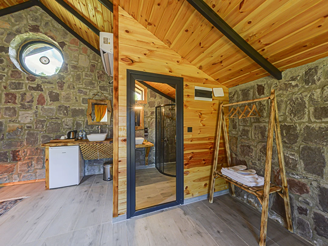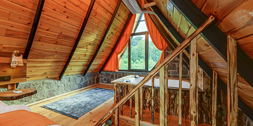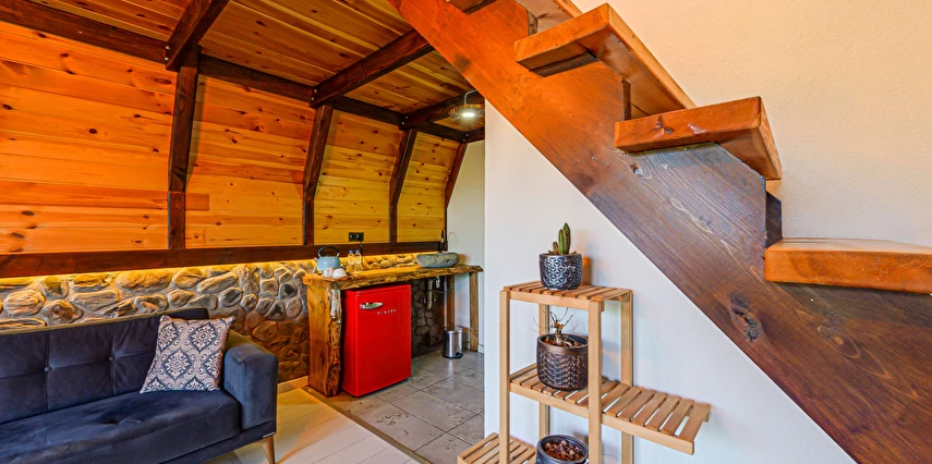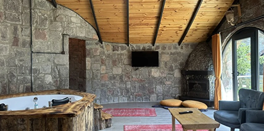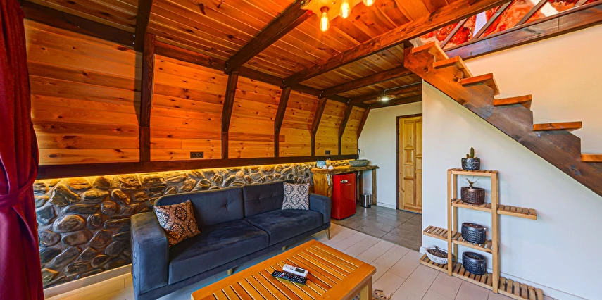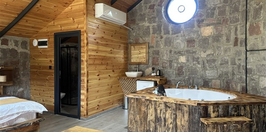 - 2 adet deluxe bungalov, geniş iç hacmi, kuzine sobası ve jakuzisiyle, sakinliği ve keyfi bir arada sunar. Doğanın sesleri eşliğinde huzur dolu bir konaklama imkânı.