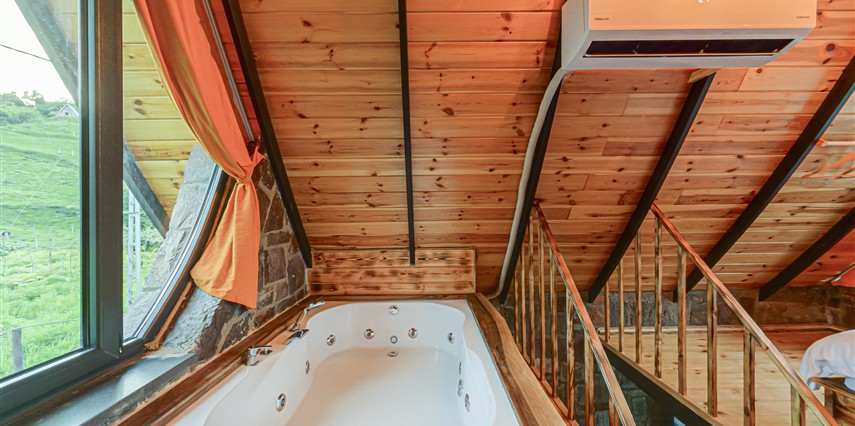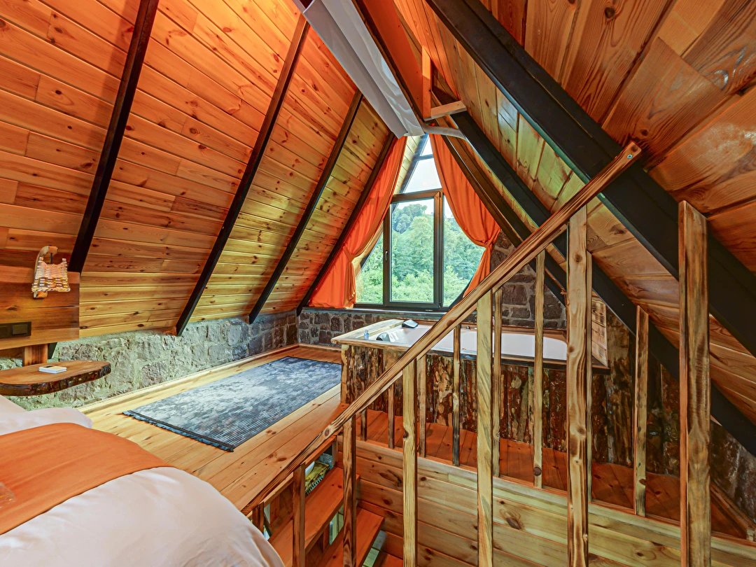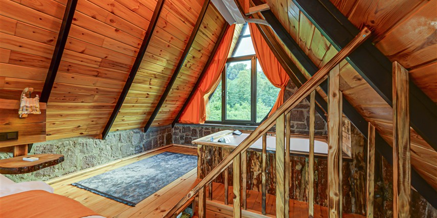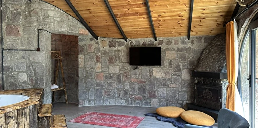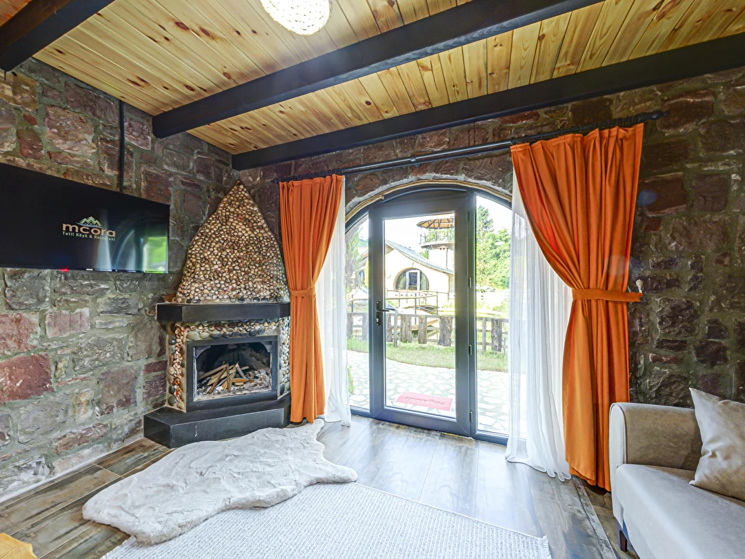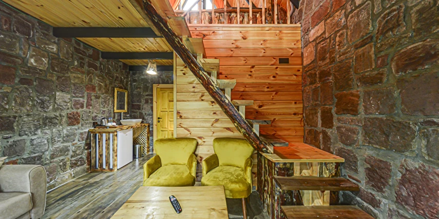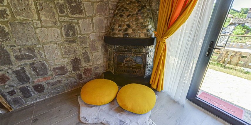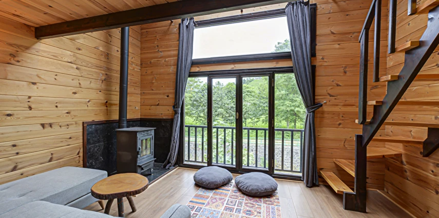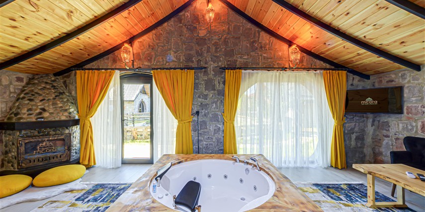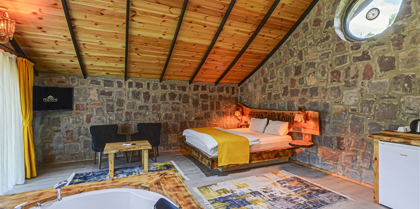 - 2 adet deluxe bungalov, geniş iç hacmi, kuzine sobası ve jakuzisiyle, sakinliği ve keyfi bir arada sunar. Doğanın sesleri eşliğinde huzur dolu bir konaklama imkânı.