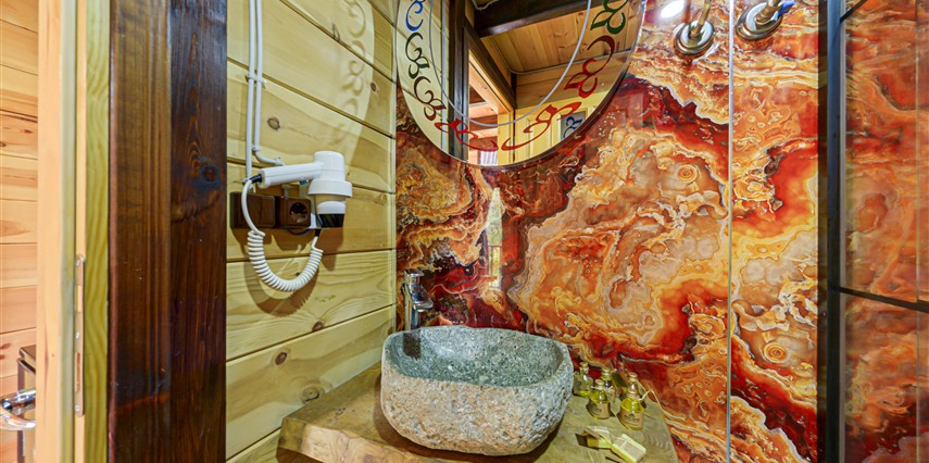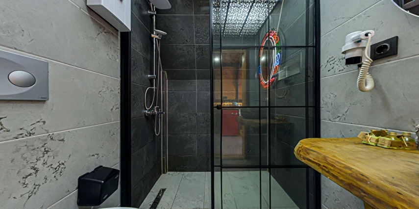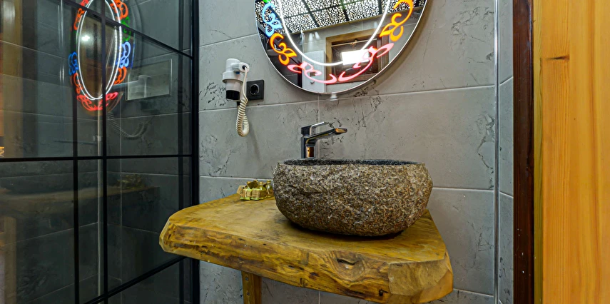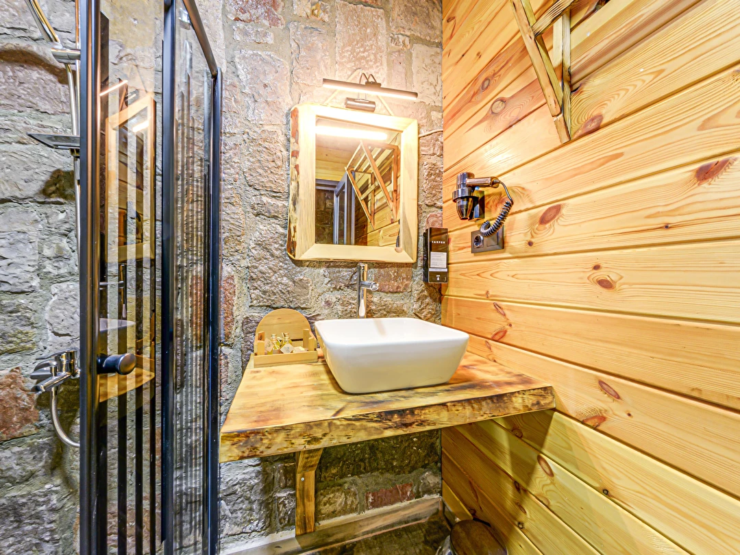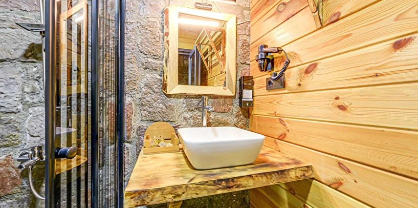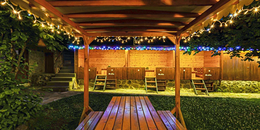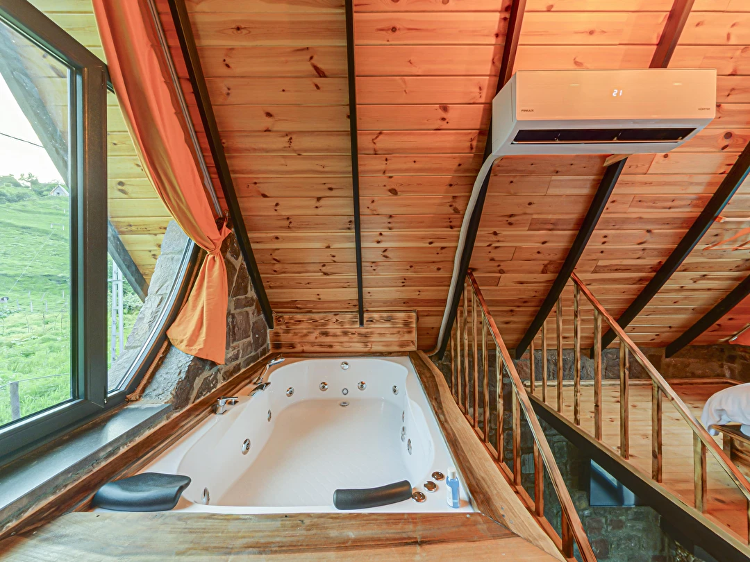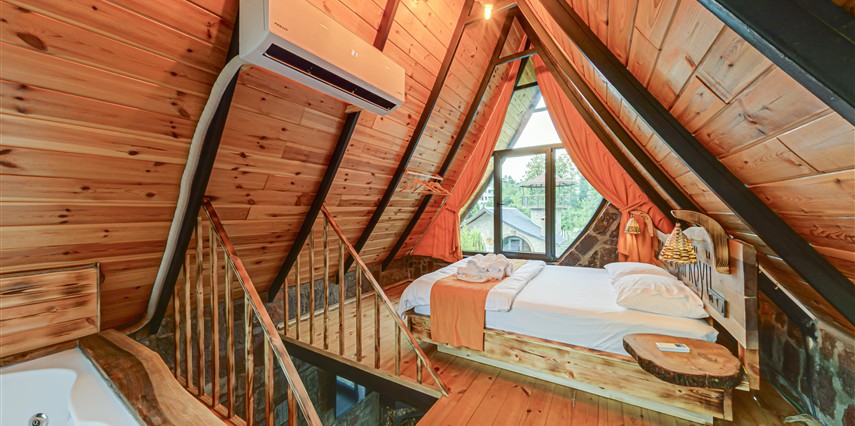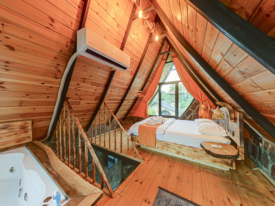 - 2 adet deluxe bungalov, geniş iç hacmi, kuzine sobası ve jakuzisiyle, sakinliği ve keyfi bir arada sunar. Doğanın sesleri eşliğinde huzur dolu bir konaklama imkânı.