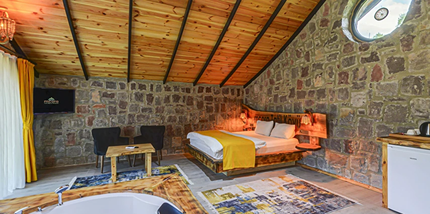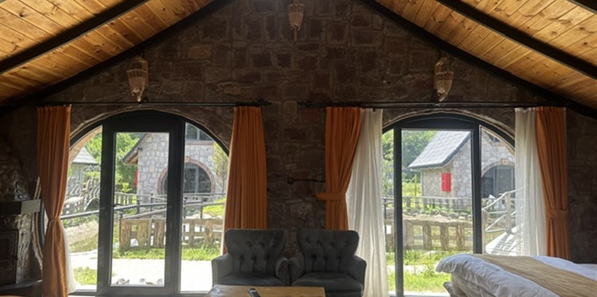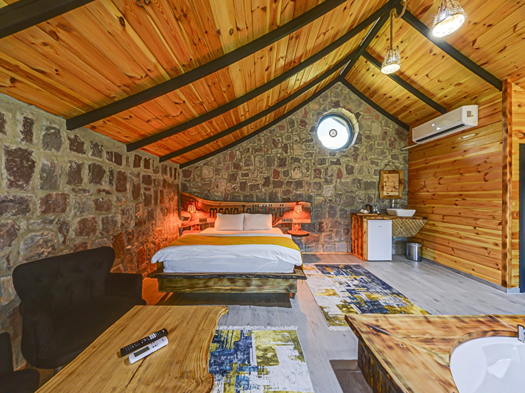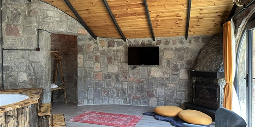 - Gölet kenarında konumlandırılmış 9 adet taş evimiz, taş mimarisiyle doğal uyumu yakalarken, manzarası ve sakinliği ile dinlendirici bir atmosfer sunar. Gölet etrafında yürüyüş yapabilir, kuş sesleri eşliğinde gün batımını izleyebilirsiniz.