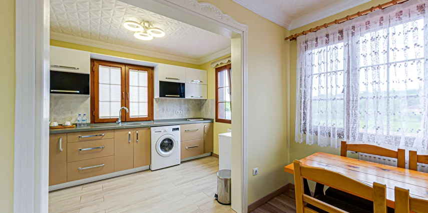 - Kalabalık aileler için özel tasarlanan 2+1 aile dairemiz, geniş oturma alanı, mutfak ve ayrı odalarıyla çocuklu aileler için ideal bir konaklama seçeneğidir. Kendinizi evinizde hissedeceğiniz şekilde dizayn edilmiştir.