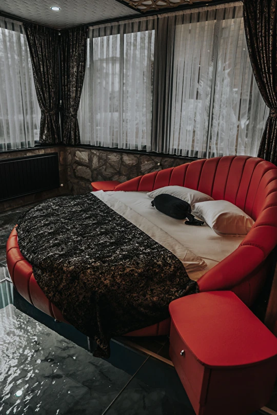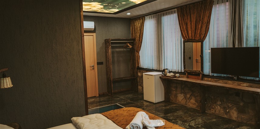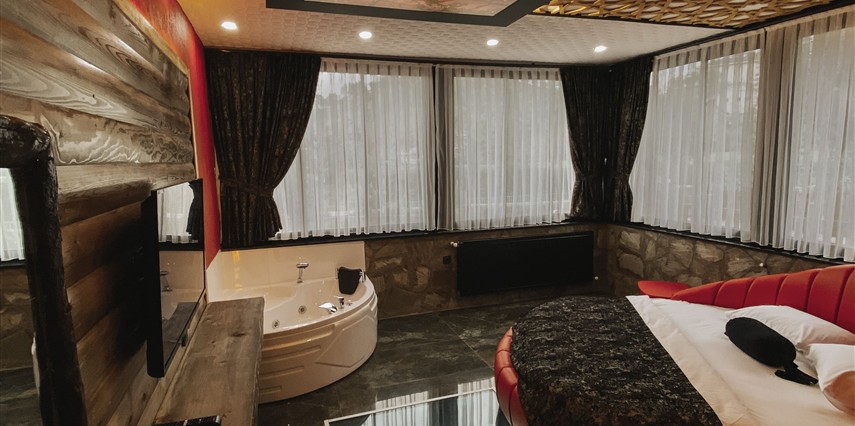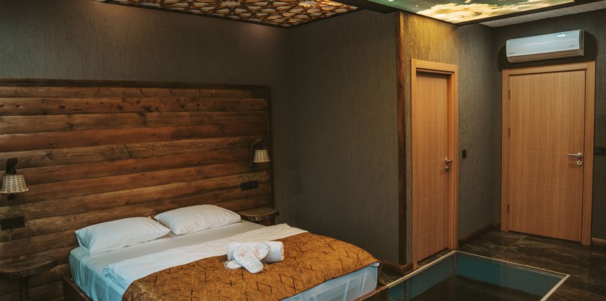 - 4 suit oda (Standart, Jakuzili Suit, Ultra Lüks Suit), içinde jakuzi, klima, merkezi ısıtma ve odadan havuz manzarası gören detaylarıyla şıklığı ve rahatlığı bir araya getirir.