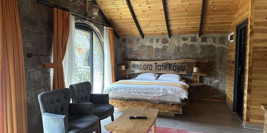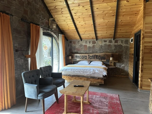- 3 adet modern serender, kuzineli yapısı, geniş yatak kapasitesi ve doğa manzarasıyla geleneksel mimariyi konforla buluşturur.