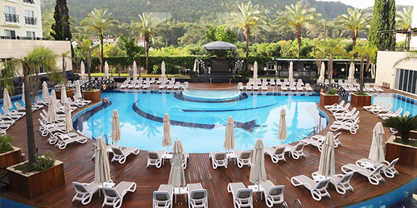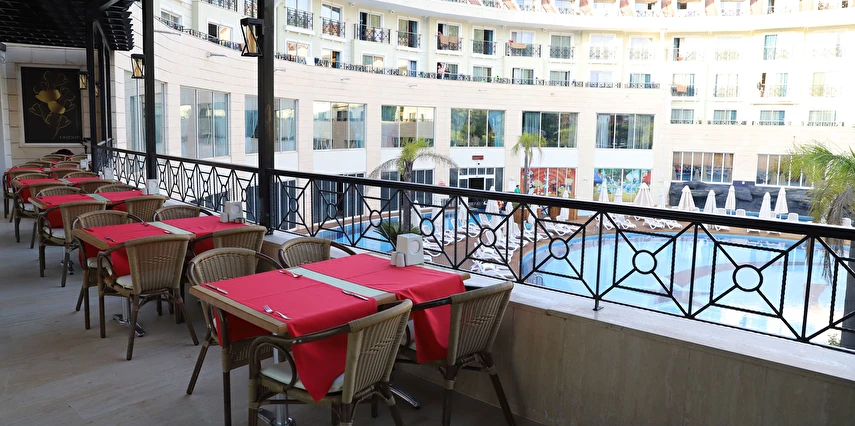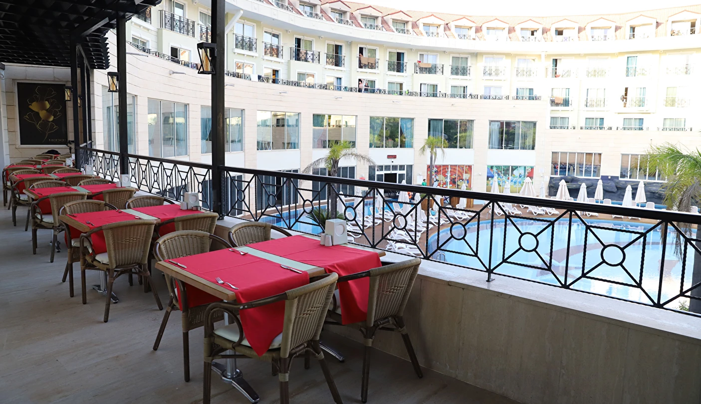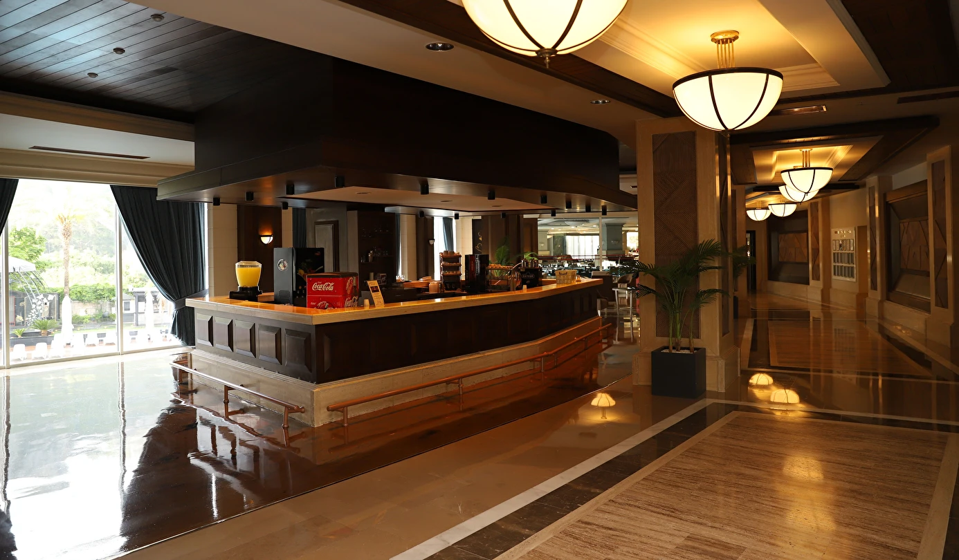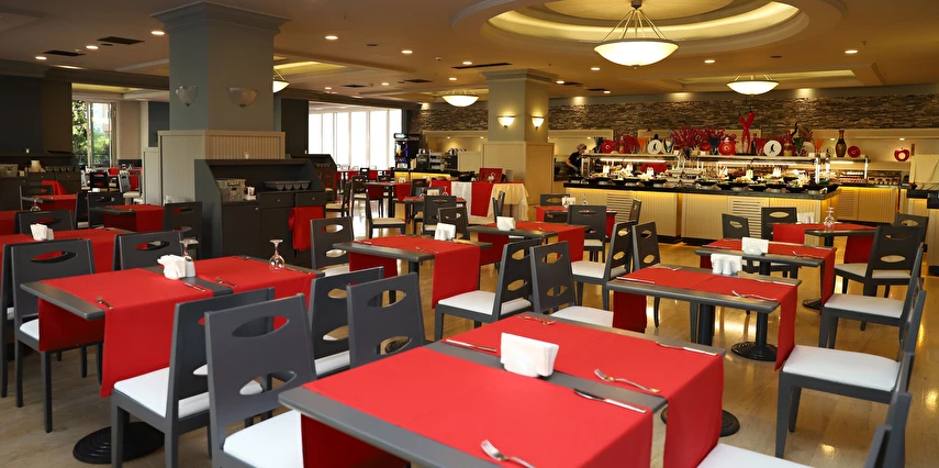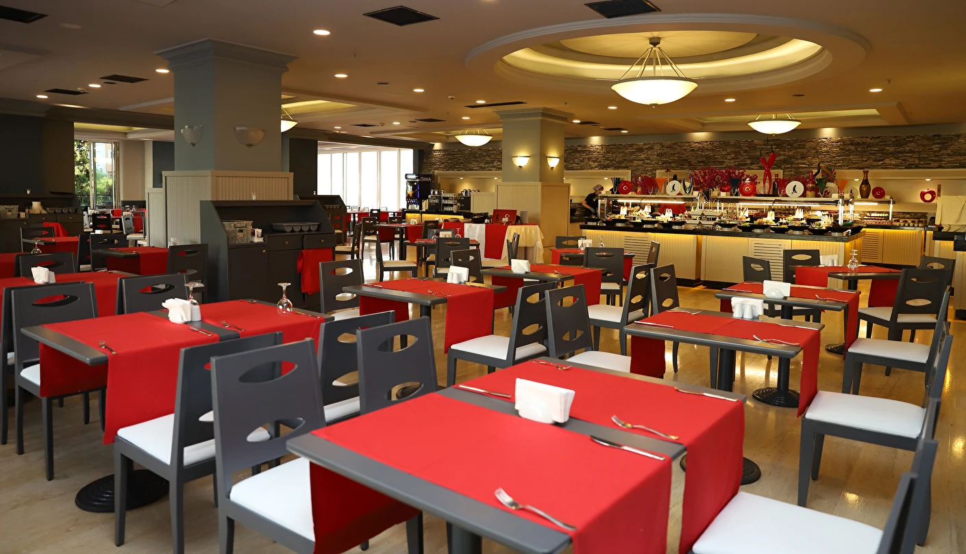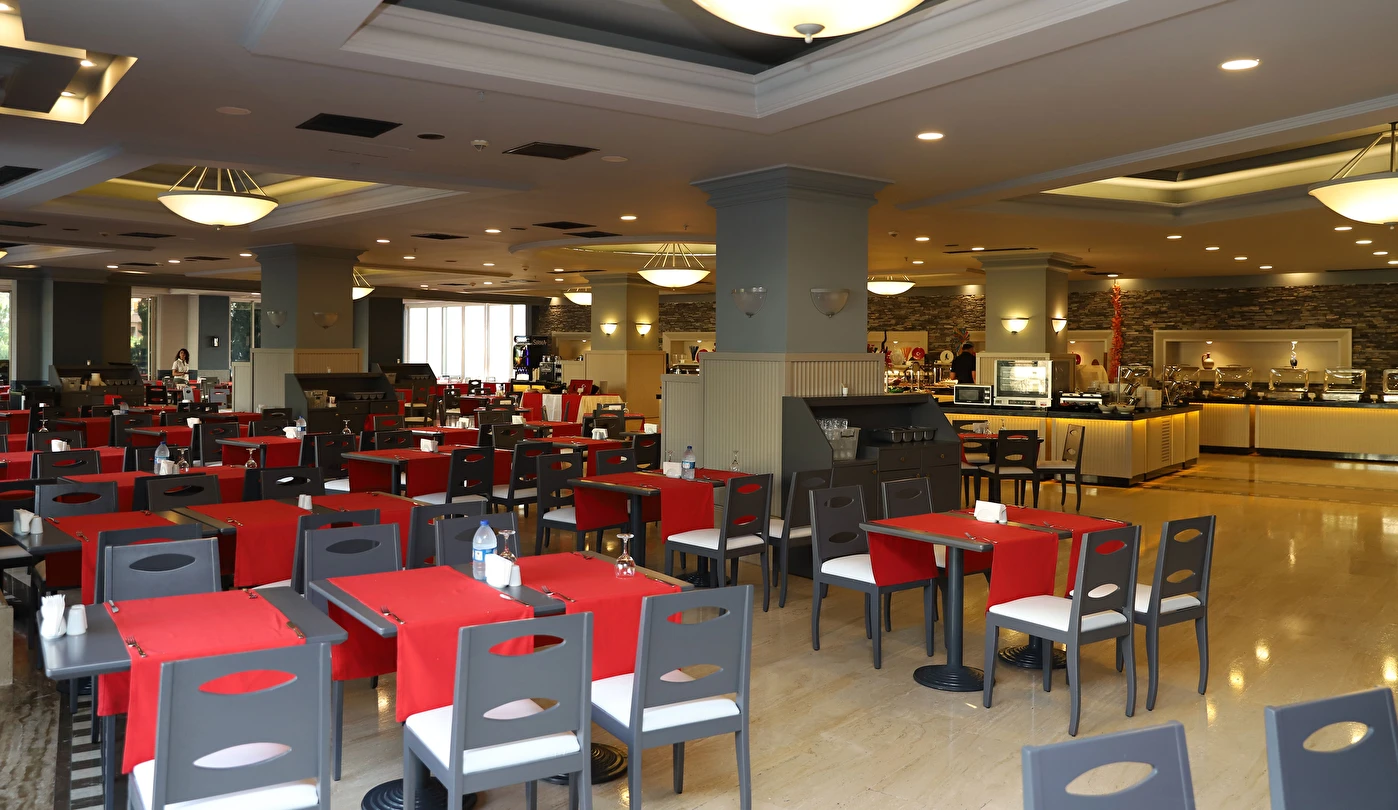 Sabah kahvaltısı, öğle ve akşam yemekleri açık büfe olup tesisin belirlediği markalar dahilinde 10:00 ile 02:00 saatleri arasında yerli alkollü alkolsüz ücretsizdir. İthal içecekler, şişe içecekler, taze sıkılmış meyve suları ve yerli şampanya ücretlidir. A la carte restoranlar için misafir ilişkilerinden 10:00-11:00 ve 13:00-16:00 saatleri arasında rezervasyon yapılmaktadır. A la carte restoranlarda yerli ve bazı ithal alkollü içecekler ve masa şarapları haricindeki şaraplar ücretlidir. Barlarda şişe içki servisi yapılmamaktadır. Türk kahvesi lobby barda ücretsizdir.